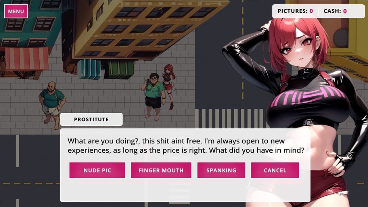 Perv With A Cam v 0.01 Новая версия Полная версия Последняя Дата выхода 2024 Разработчик Unicorn Studio Жанр Обновлено 15 октября 2025, 09:41 Список изменений Perv With A Cam — история о безымянном человеке, чье увлечение заключается в создании рискованных фотографий женщин в откровенных нарядах или вовсе без них. Протагонисту предстоит путешествовать по различным локациям, выискивая удачные моменты для съёмки. Полученные снимки становятся товаром, который можно продать, а вырученные средства открывают доступ к новым местам и услугам, доступным для приобретения у персонажей. При этом деятельность героя не остается безнаказанной, ведь за девушками присматривают охранники. Основная задача — оставаться незамеченным, поскольку стражи порядка без колебаний применят силу к любому, кто попытается нарушить покой охраняемых ими женщин. Каждая вылазка за удачным кадром превращается в испытание, где неосторожность может привести к неминуемой расправе. Игровой процесс Perv With A Cam строится на постоянном риске и необходимости избегать прямого столкновения с бдительными защитниками. Сюжетная линия не обходит стороной и табуированные темы. Среди объектов для съёмки оказываются не только незнакомые девушки в различных сценариях, но и члены семьи главного героя, включая его мать и сестру. Этот аспект добавляет повествованию провокационности, заставляя персонажа переступать через моральные границы в погоне за уникальными и дорогостоящими кадрами. Скачать торрент Скриншоты Скачать БЕЗ торрента прямая ссылка через uTorria Альтернативные раздачи Прямые ссылки Облачные хранилища v 0.01 68.4 МБ Показать Системные требования ОС: 7, 8, 10, 11 Процессор: Dual Core 2.4 GHz Оперативная память: 2 ГБ Видеокарта: 2 ГБ Нагота