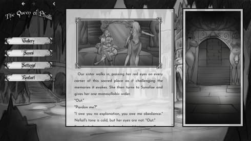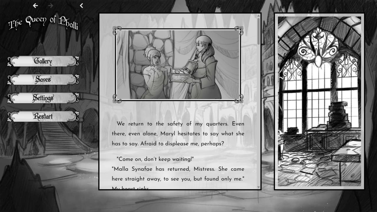 The Queen of Phalli v Ch.13.2 Новая версия Полная версия Последняя Дата выхода 20 окт. 2025 Разработчик Labor of Love Жанр Визуальная новелла, Приключения Положительные на основе 31 обзоров в Steam 97% Обновлено 23 октября 2025, 13:13 Список изменений The Queen of Phalli — повествование о мире, где статус и власть напрямую зависят от страсти и раскрепощенности. В подземных царствах, населенных исключительно женщинами, жрицы богини похоти установили неоспоримый матриархальный порядок. Во главе дома Эль'Наар стоит матрона Сиприина, чье существование представляет собой непрерывную борьбу между материнским долгом и всепоглощающим вожделением, вызванным ее связью с божеством. Ее решения и внутренняя битва задают тон для испытаний, выпадающих на долю ее дочерей. В центре этого общества находится юная Элифаэль Эль'Наар, которой предстоит пройти опасный ритуал, известный как Крещение. Это не просто церемония, а суровое испытание преданности, способное либо возвысить ее до ранга жрицы, либо обречь на потерю разума и положения. Ее путь осложняется отношениями с сестрами: строгой Нефаиль, уже ставшей жрицей, и обольстительной Синафаэ, которая является первой любовью Элифаэль. Каждое принятое решение в The Queen of Phalli влияет на хрупкий баланс в семье и определяет будущее главной героини в этом суровом мире. Этот интерактивный роман построен на текстовой основе, где выборы формируют разветвленную сюжетную линию с множеством концовок. Повествование, насчитывающее более 200 тысяч слов, подкреплено двумя сотнями нарисованных вручную иллюстраций. Судьба Элифаэль полностью подчинена действиям, совершаемым по ходу прохождения. Взаимодействия с другими обитательницами мира, включая гномов, гоблинов и кентавров, еще глубже раскрывают сложную иерархию общества, где вера и плотские утехи переплетены в единое целое. Скачать торрент Скриншоты Показать больше Видео из игры Скачать The Queen of Phalli Тип релиза Пиратка (Таблетка: Вшита) Версия v Ch.13.2 (Полная) Последняя Размер 189.73 МБ Интерфейс Английский Озвучка Отсутствует Установка и запуск: Скачать .torrent торрент файл Скачать БЕЗ торрента прямая ссылка через uTorria Альтернативные раздачи Прямые ссылки Облачные хранилища v Chapter 13.2 181 МБ Показать Системные требования ОС: Windows 10 (64-bit) Процессор: 64-bit sse3 Оперативная память: 4 ГБ Видеокарта: 1 ГБ Место на диске: 1 ГБ Протагонистка, Рисованная графика, Игры в 2D, Эмоциональная, Решения с последствиями, Средневековье, Романтика, Выбери себе приключение, Несколько концовок, Нагота