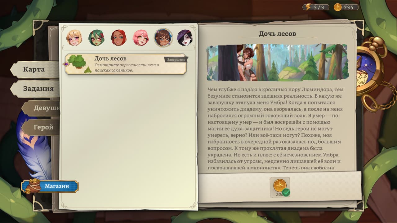 Umbranomicon — это фэнтезийный симулятор свиданий с элементами ролевой игры, сюжет которого переносит протагониста в удивительный мир Люминдор. Главной задачей становится спасение этой вселенной от гнета жестокой правительницы и поиск способа вернуться в родное измерение. Местный уклад жизни имеет одну пикантную особенность — полное отсутствие мужского населения, что создает для героя уникальные условия. Ему предстоит стать настоящим искусителем, применяя остроумие и харизму для покорения сердец многочисленных одиноких девушек. Повествование насыщено интригующими историями и секретами, которые раскрываются по мере исследования детально проработанного мира.