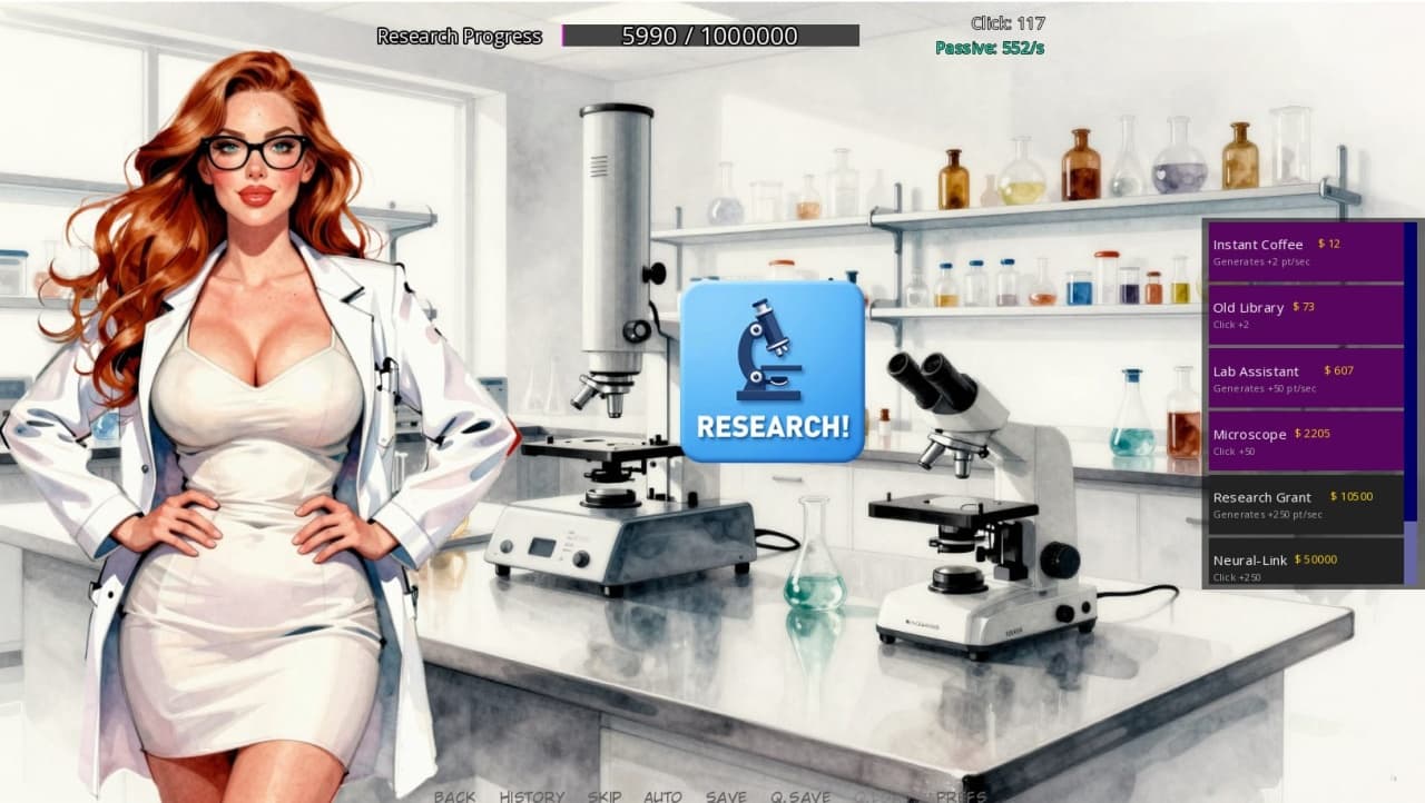 Chemical Curvers Clicker — это история о причудливой женщине-учёном и её физических метаморфозах, напрямую связанных с научными изысканиями в области интимности. В центре этого проекта находится визуальная эволюция главной героини, чьё телосложение претерпевает значительные изменения по мере продвижения в исследованиях. Каждый успешный этап научной деятельности отражается на её облике, постепенно делая формы более выразительными и соблазнительными. Конечной целью становится наблюдение за полным циклом этих трансформаций, которые напрямую зависят от активности геймера. Процесс изучения связей между здоровьем и близостью приводит к тому, что протагонистка обретает свою самую здоровую и привлекательную форму.