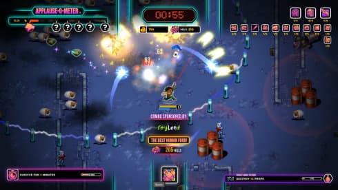 Nuclear Gladiators 3000 v Build 20517193 Новая версия Полная версия Последняя Дата выхода 30 окт. 2025 Разработчик Turbo Napalm Жанр Экшены, Аркады Очень положительные на основе 51 обзоров в Steam 96% Обновлено 5 ноября 2025, 13:37 Список изменений Nuclear Gladiators 3000 — жестокое телевизионное шоу, в котором выживание на арене гарантирует славу и признание миллионов зрителей. Участникам предстоит пробиваться сквозь бесконечные волны мутантов и других отбросов общества в постоянно меняющихся условиях процедурно генерируемых локаций. Конечной целью каждого бойца является не просто победа, а превращение в настоящую медийную звезду антиутопического будущего. Сражения, пропитанные атмосферой ретровейва, транслируются в прямом эфире, где каждый удачный выстрел повышает рейтинг гладиатора и приближает его к заветному месту в Зале Славы. Каждый выход на арену — это возможность доказать свое превосходство. Геймплей предлагает выбрать одного из нескольких уникальных воинов, обладающих собственным набором навыков и путями развития. В перерывах между смертельными схватками в проекте Nuclear Gladiators 3000 бойцы улучшают свое снаряжение и навсегда открывают новые способности, что повышает шансы в последующих забегах. Сражаясь с особо сильными чемпионами и выполняя специальные задания, гладиаторы зарабатывают любовь публики, от которой напрямую зависит их успех в этом кровавом спорте будущего, транслируемом каналом Blaster Vision. Путь к вершине гладиаторского олимпа: Уничтожение орд безжалостных мутантов и мятежников. Постоянное расширение личного арсенала за счет нового оружия и улучшений. Выполнение специальных заданий для повышения уровня известности. Противостояние могущественным чемпионам арены в напряженных битвах. Перманентное усиление характеристик и разблокировка контента между боями. Скачать торрент Скриншоты Показать больше Видео из игры Скачать БЕЗ торрента прямая ссылка через uTorria Альтернативные раздачи Прямые ссылки Облачные хранилища v Build 20517193 132 МБ Показать Системные требования ОС: Windows 7, 8, 10 (64 бита) Процессор: 2 ГГц Оперативная память: 1 ГБ Видеокарта: 1 ГБ Место на диске: 400 МБ Пиксельная графика, Упрощённый рогалик, Вид сверху, Игры в 2D, Цветастая, Ретро, 80-е, Арена-шутер, Набор очков, Антиутопия, Игры с геймпадом