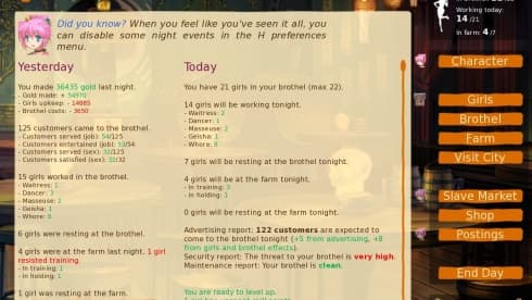 Центральным элементом всего процесса выступает персонал, состоящий из девушек с уникальными характеристиками и системами взаимоотношений. В Brothel King каждая работница представляет собой сложный актив, чья продуктивность зависит от множества факторов. Эффективность каждой из них определяется целым набором взаимосвязанных параметров, требующих от владельца постоянного контроля и развития, среди которых: