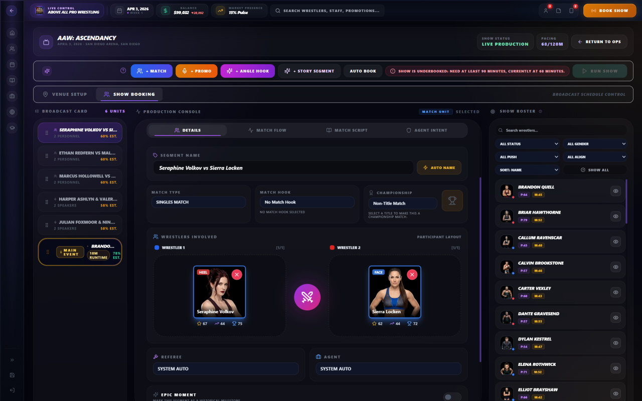 Believr Pro Wrestling — это симулятор управления в мире профессионального рестлинга, где основной акцент смещен с аркадных поединков на принятие взвешенных решений и их отложенные последствия. Проект предлагает детальный контроль над построением еженедельных шоу и крупных PPV-событий. Специальная система Match Flow позволяет выстраивать матчи поэтапно, регулируя их стиль, темп и ключевые моменты для защиты статуса бойцов. Аналогичный подход реализован и для промо-сегментов, что дает возможность формировать уникальные противостояния вместо использования шаблонных заготовок. Здесь нет гарантированных результатов, а успех лишь повышает ожидания и создает новые управленческие вызовы.
