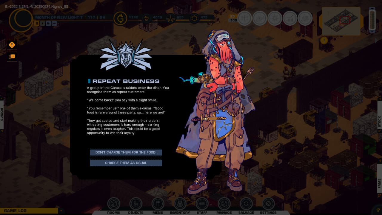 The Diner at the End of the Galaxy RUS v Build 21255328 Новая версия Ранний Доступ Последняя версия Дата выхода 18 ноя. 2025 Разработчик General Interactive Co. Жанр Стратегии, Симуляторы В основном положительные на основе 27 обзоров в Steam 74% Обновлено 15 ноября 2025, 14:14 Список изменений The Diner at the End of the Galaxy — хроника возвышения в галактике, оправляющейся от последствий масштабного конфликта. Политическая карта звездной системы Нуса перекраивается усилиями нескольких могущественных фракций, и именно вам предстоит повлиять на этот баланс сил. Инструментом для достижения власти станет скромное на первый взгляд заведение, расположенное на заброшенном аванпосте посреди пустынного мира. Завоевывая лояльность посетителей — от контрабандистов до наемников, вы сможете получить доступ к уникальным специалистам и товарам, а также финансировать военные кампании, меняющие расстановку сил. Успех предприятия напрямую зависит от грамотного менеджмента. Развитие заведения в The Diner at the End of the Galaxy требует строительства новых кухонь и залов, а также обустройства садов для выращивания экзотических ингредиентов. Чтобы добыть редкие компоненты для меню или ценные ресурсы, необходимо снаряжать экспедиции к дальним планетам, тщательно подбирая команду для рискованных вылазок. Каждое решение, от составления меню до поддержки той или иной группировки, определяет ваше место в этом неспокойном уголке космоса. Этот проект предлагает стать серым кардиналом межзвездного масштаба. Рецепты галактического влияния: Превращение уединенного форпоста в популярный центр притяжения для авантюристов. Создание уникального меню с учетом предпочтений инопланетных рас. Организация рискованных экспедиций за редкими ресурсами на далекие миры. Укрепление отношений с фракциями для получения доступа к эксклюзивным товарам. Скачать торрент Скриншоты Показать больше Скачать БЕЗ торрента прямая ссылка через uTorria Альтернативные раздачи Прямые ссылки Облачные хранилища v Build 21255328 540 МБ Показать Системные требования ОС: Windows 10 (64-bit) Процессор: Intel Core i3 Duo Core Оперативная память: 8 ГБ Видеокарта: Nvidia GeForce GTX 450 Место на диске: 3 ГБ Менеджмент, Строительство базы, Кулинария, Экономика, Управление ресурсами, Симулятор колонии, Строительство, Сельское хозяйство, Исследования, Инопланетяне, Космос, Градостроение, Политический симулятор, Игры в 2D, Мультипликация, Изометрия, Пиксельная графика