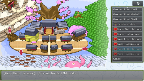 Боевая система основана на пошаговых сражениях с применением цепочек команд. Перемещение по миру реализовано в формате сайд-скроллера, а противники отображаются на локациях в виде символов, что позволяет избегать случайных столкновений. Для тех, кто не желает вступать в рядовые схватки, в Sakura Gozen предусмотрены специальные предметы для мгновенного устранения неприятелей. Помимо сражений, существует возможность пополнять кошелек в местном увеселительном районе. Для более глубокого погружения в терминологию мира созданы Записки Сузунэ, служащие своеобразной внутриигровой энциклопедией для разъяснения забытых деталей.