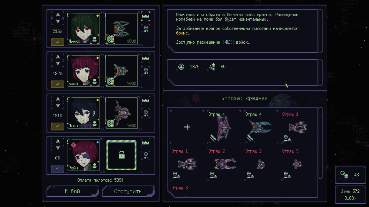 - Найм и тренировка пилотов для повышения их боевых качеств.