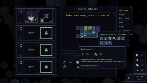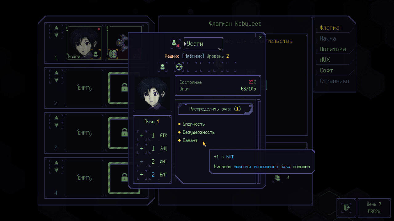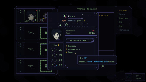 Противостояние растущей угрозе космического культа разворачивается в процедурно генерируемой галактике, где политическая обстановка постоянно меняется. Принятые решения напрямую влияют на дипломатические отношения с различными фракциями, а случайные события создают новые вызовы и возможности. Успех в NebuLeet зависит не только от тактики в бою, но и от комплексного менеджмента всей военизированной организации.