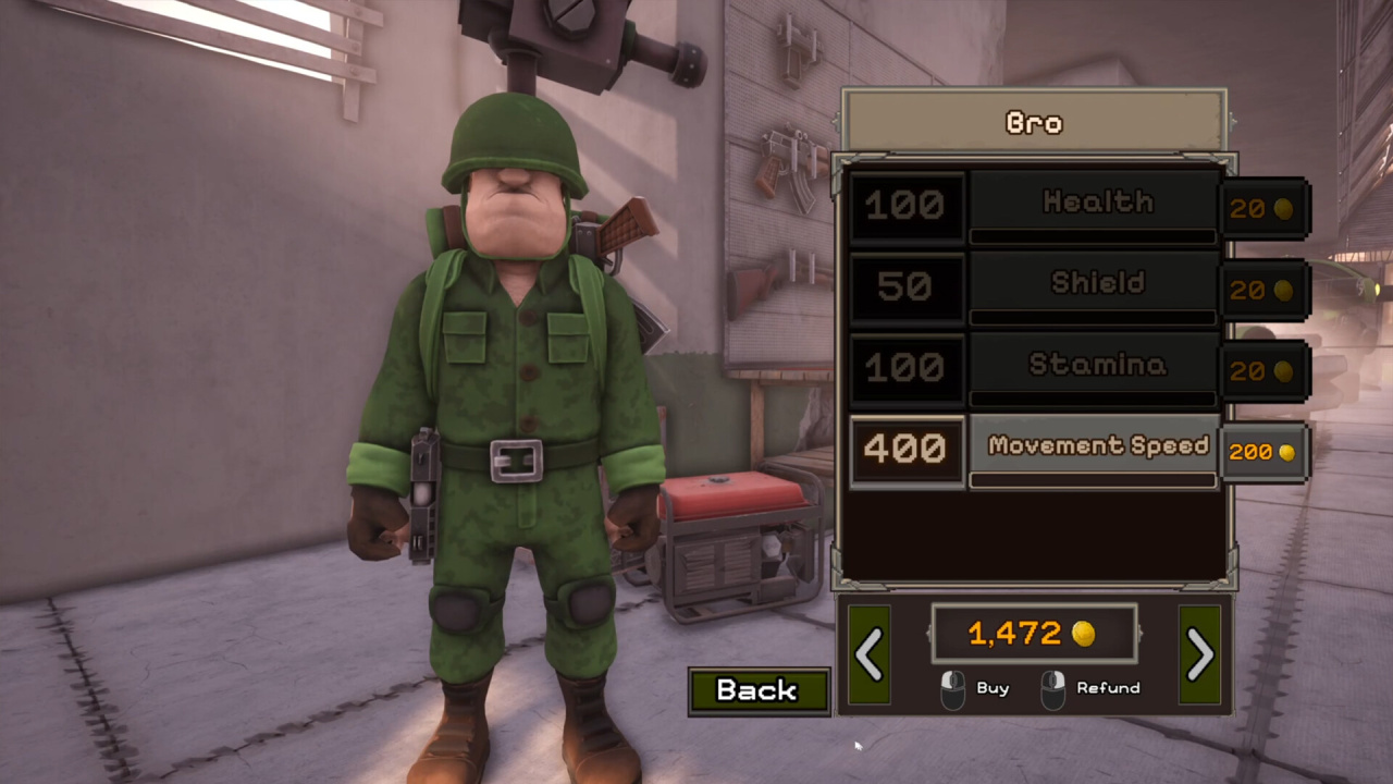 - Улучшение постоянных характеристик персонажа за золото после гибели.