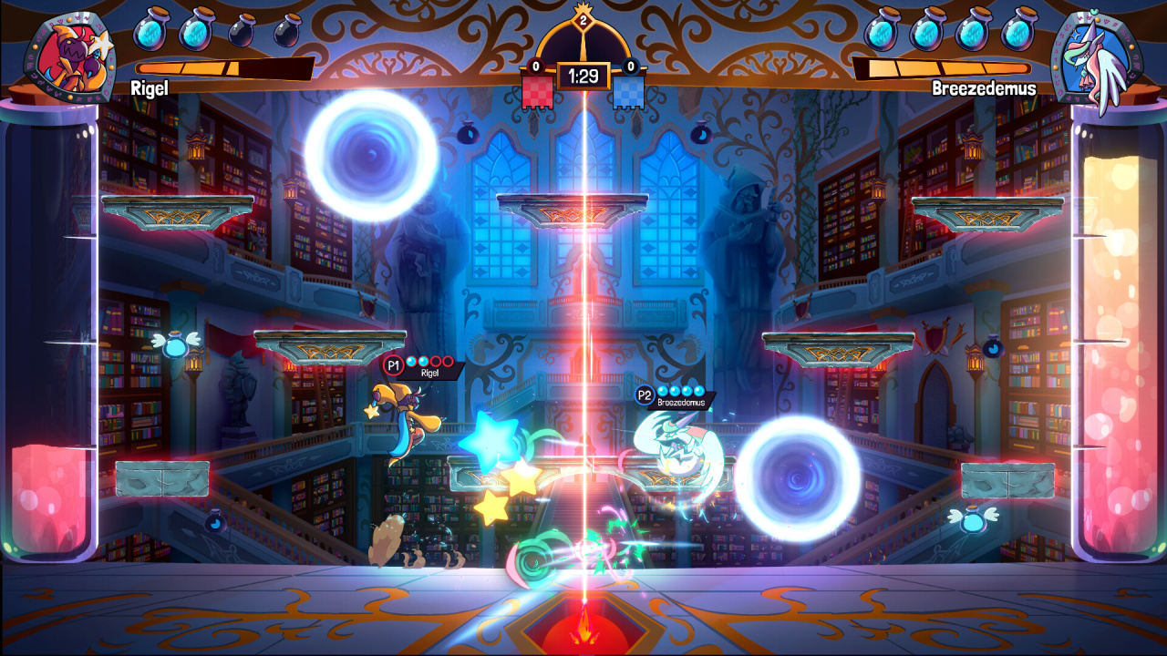 The Amazing Crackpots Club! — это эксцентричный магический турнир, разворачивающийся в стенах секретного сообщества, где академические знания применяются для тотального разрушения. Геймплей строится вокруг напряженных дуэлей, в которых первостепенной задачей становится уничтожение огромного сосуда оппонента при одновременной защите собственной драгоценной колбы. Происходящее на экране напоминает гремучую смесь спортивного состязания и платформера, требующую от чародеев не только меткости, но и акробатической ловкости для выживания под шквалом снарядов.