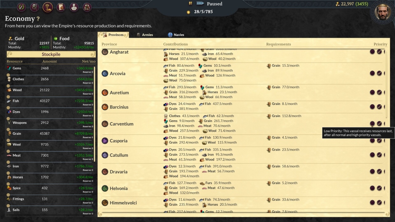 - Социальная симуляция — глубокое взаимодействие с сенаторами и наместниками, чья лояльность зависит от политической конъюнктуры.