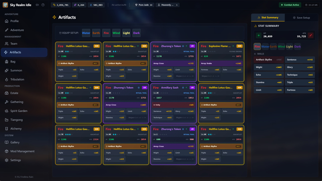 Sky Realm Idle, выступая комплексным симулятором возвышения, отказывается от банального накопления очков в пользу настройки мистических формаций. Могущество базируется на матрице из 12 ячеек. Сюда интегрируются реликвии, наделяющие отряд аурой враждебности или критическим уроном. Параллельно необходимо развивать поместье, распределяя рабочих для добычи звездного железа и призрачной древесины. Добытые ресурсы отправляются в лаборатории, а редкие растения культивируются внутри духовных садов. Созданные медикаменты позволяют рядовым рекрутам прорывать физические лимиты. Так происходит трансформация смертного в небожителя.