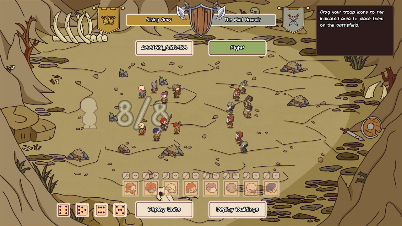 Глобальная карта предлагает исследовать регионы королевства ради ценных трофеев. Неумолимое течение времени заставляет планировать дни до следующего марш-броска. Успех кампании в Rising Army зависит от показателя удовлетворенности правителя. Выполнение приказов гарантирует приток снабжения. Игнорирование поручений монарха грозит неминуемым крахом всей экспедиции. Нехватка ресурсов вынуждает искать баланс между лечением и муштрой. Между походами командир обязан администрировать полевую базу. Полноценное функционирование аванпоста опирается на строгую дисциплину.