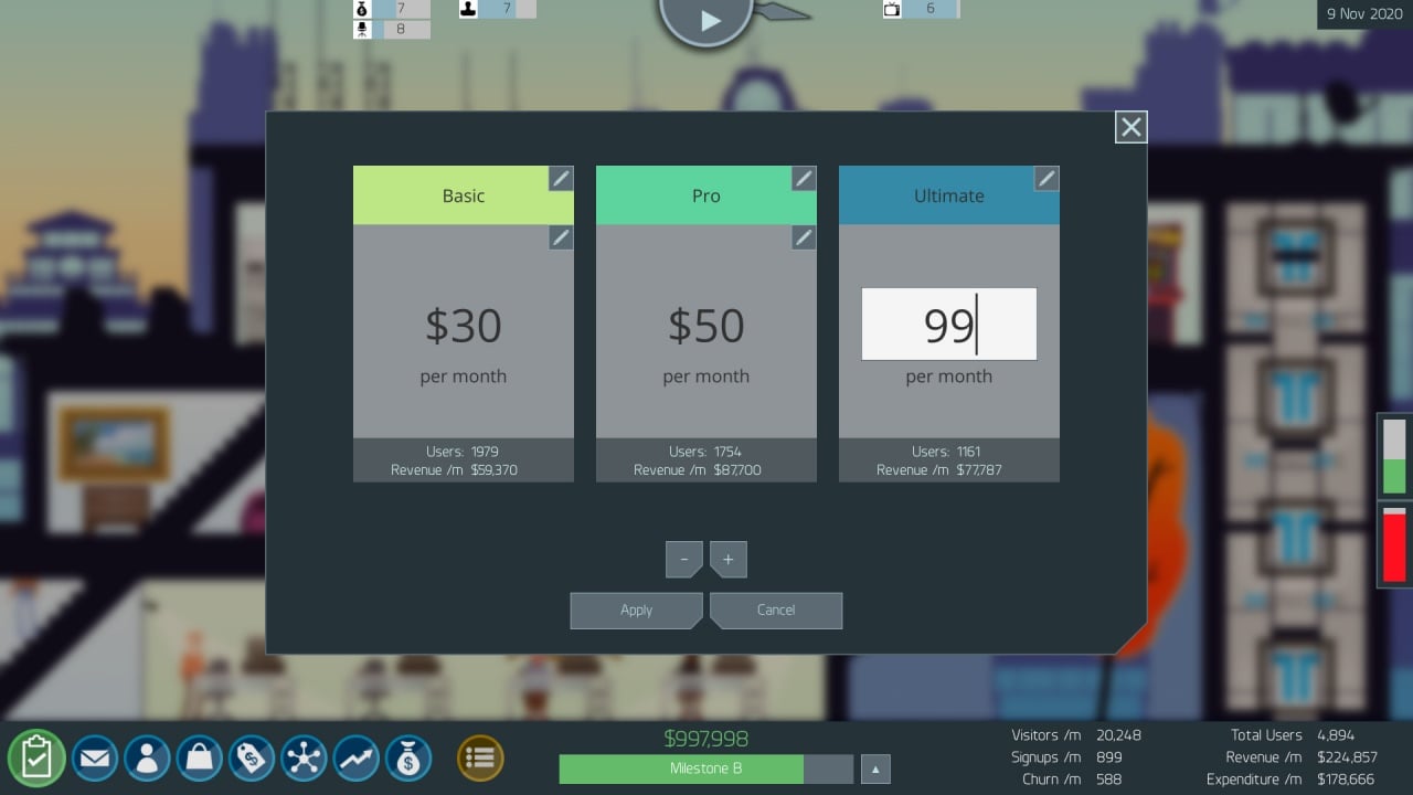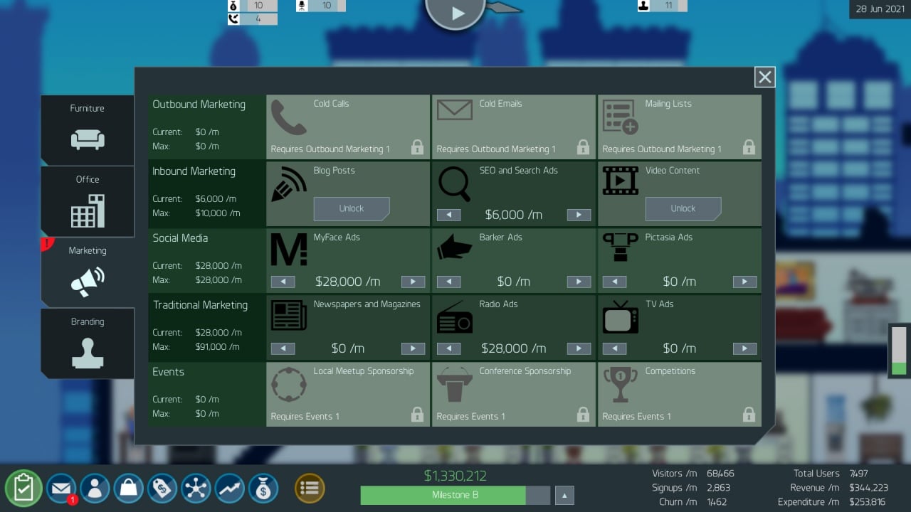 Startup Freak v 1.0.0 Новая версия Полная версия Последняя Дата выхода 18 окт. 2019 Разработчик PulPul Games Жанр Симуляторы, Стратегии, Инди Смешанные на основе 43 обзоров в Steam 65% Обновлено 26 января 2025, 04:32 Список изменений Startup Freak представляет собой симулятор управления начинающей компанией по производству программного обеспечения. Начинается всё с обустройства офиса и набора рабочих. В помещениях нужно поставить мебель для работы и отдыха, а люди выбираются по навыкам и характеристикам поведения и стрессоустойчивости. Разработка же самих программ выглядит как гибрид сапёра и сбора пазлов из блоков, отвечающих за различные параметры, вроде защиты, багов и полезности. Однако нанять команду и сделать продукт — это только половина дороги. Одних способов рекламы в Startup Freak целых 5 видов, среди которых: Внешний маркетинг. Состоит из холодных и горячих звонков, а также спам-рассылки. Внутренний маркетинг. Посты в блогах, SEO-контент и видео на популярных хостингах. Соцсети. Реклама в местных аналогах Фейсбука, Твиттера и Инстаграма. Традиционное продвижение. Передачи по телевиденью, печать в газетах и даже выступления на радио. Публичные мероприятия. Соревнования и встречи со спонсорами в разных условиях. К слову, на собственных финансах далеко не уедешь, а потому к разработке и продаже софта нужно привлекать чужой капитал. Оформлено это в виде ещё одной мини-игры. Возможных бизнес партнёров можно уговорить выделить деньги, апеллируя к их личным предпочтениям с помощью дедукции или случайного подбора стратегии. Кроме прочего, нужно также заниматься серверами с "железом" и устанавливать цены с форматами распространения разработанных программ. В общем, настоящий рай микроменеджмента. Скачать торрент Скриншоты Показать больше Видео из игры Скачать Startup Freak Тип релиза Лицензия (Таблетка: Присутствует) Версия v 1.0.0 (Полная) Последняя Размер 65.6 МБ Интерфейс Английский Озвучка Отсутствует Скачать .torrent торрент файл Скачать БЕЗ торрента прямая ссылка через uTorria Системные требования ОС: 7, 8, 10 Процессор: 2 GHz Dual Core Оперативная память: 2 ГБ Видеокарта: Hardware Accelerated Graphics Место на диске: 1 ГБ Менеджмент, Экономика, Песочница, Строительство