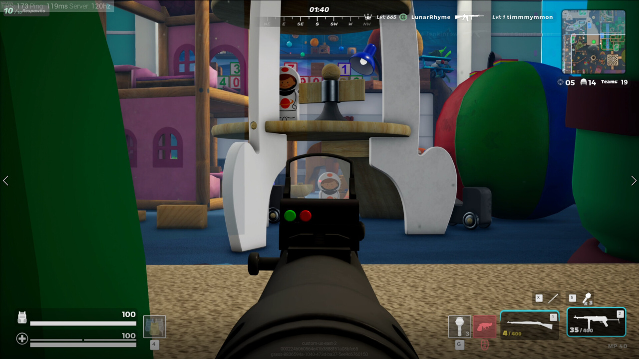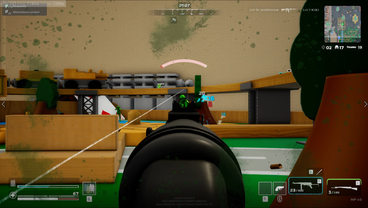 Mini Royale — это многопользовательский шутер от 3 лица, превращающий масштабную спальню в полигон для ожесточенных перестрелок изумрудных пластиковых бойцов. Перемещение по локации требует постоянного применения крюка-кошки, позволяющего ловко цепляться за оконные гардины или пролетать между высокими коллекционными статуэтками. Окружение активно участвует в бою: железнодорожный состав из конструктора служит отличным транспортом, а гоночный болид на пульте прекрасно отвлекает внимание противников. Солдаты вольны настраивать собственные характеристики, выбирая перки на усиление брони или увеличение высоты прыжка. Визуальный образ милитаристов легко меняется благодаря обширному арсеналу косметических предметов, эмоций, планеров и холодного оружия. Запечатлеть триумфальные моменты помогает встроенная система повторов.