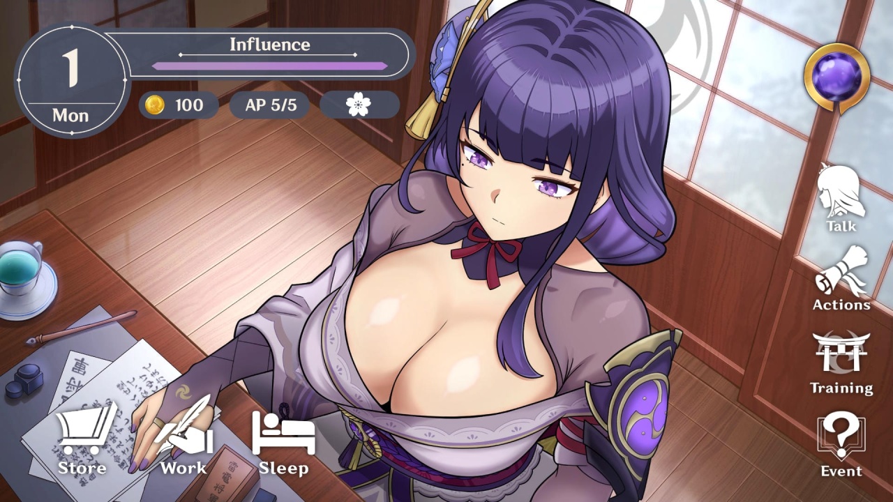 Центральной фигурой неофициального проекта по мотивам вселенной Genshin выступает Райдэн Сегун. Прославленная воительница предстает в ином амплуа, вынужденно подчиняясь приказам своего куратора. Прохождение Shogun Trainer сфокусировано на интимном сближении и поэтапном раскрытии чувственности неприступной богини. Регулярные пикантные тренировки трансформируют строгий нрав девушки, обнажая ее тайные фантазии. Детально прописанные сцены соблазнения изобилуют откровенными подробностями, демонстрируя плоды успешного руководства. Распределение физических нагрузок во время приватных сессий гарантирует полное подчинение правительницы. Результатом кропотливой работы становится всесторонняя трансформация личности героини, готовой исполнить любую прихоть господина.