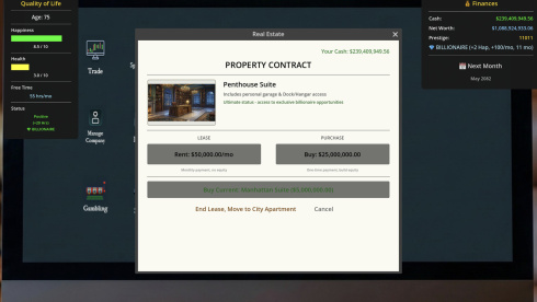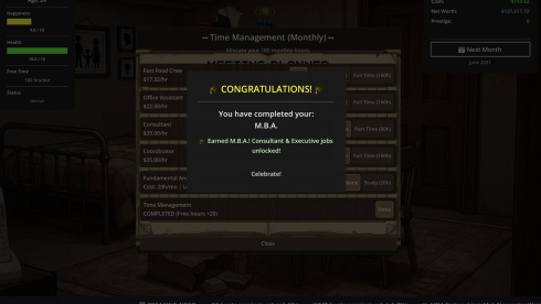 Восхождение на олимп в SELF MADE: Investment Life Sim начинается с достижения совершеннолетия и выбора между получением академического образования или немедленным трудоустройством в сфере быстрого питания. Параллельно с карьерным ростом протагонисту предстоит выстраивать личные отношения с одиннадцатью уникальными персонажами, заключать браки и воспитывать наследников. От качества воспитания напрямую зависит будущее детей: пополнят ли они ряды студентов престижной Лиги плюща или ограничатся обучением в муниципальном колледже. Накопленные средства легко конвертируются в роскошные пентхаусы, частные самолеты и огромные яхты. Достижение статуса легенды требует обязательной диверсификации доходов путем создания собственных транснациональных структур.