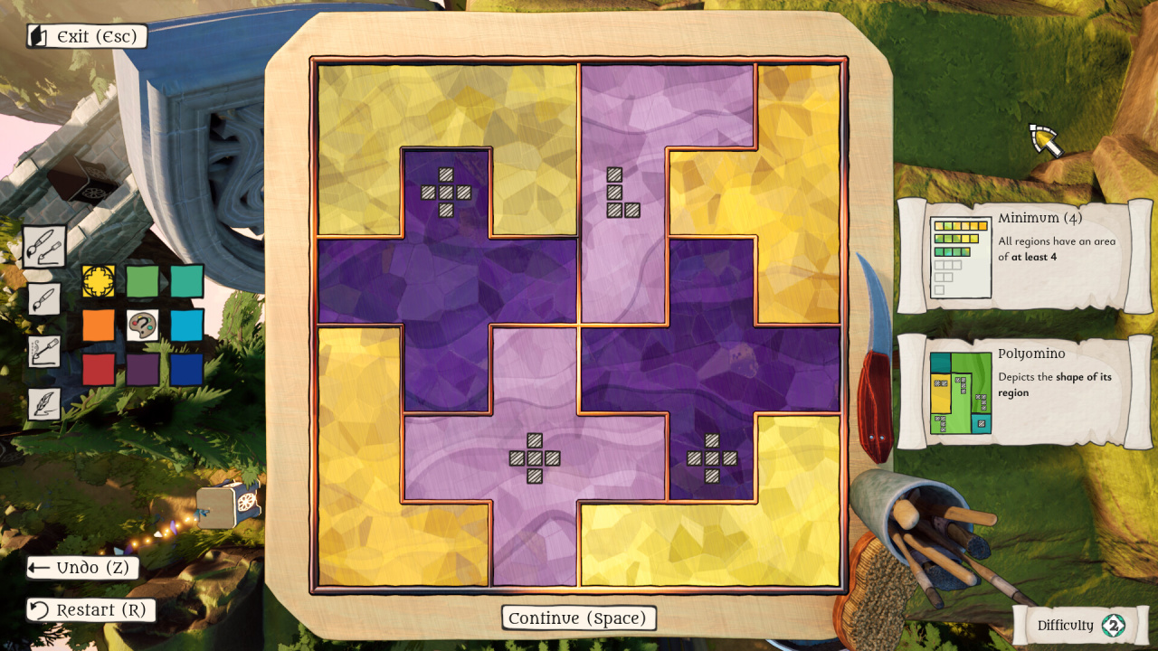 Процесс решения пространственных задач неразрывно связан с исследованием заоблачного королевства. Глобальная карта The Artisan of Glimmith разделена на живописные регионы, изобилующие лесами, уютными хижинами и каменными укреплениями. Каждая успешно завершенная сессия возвращает жизнь монументальным витражным конструкциям. Сами испытания базируются на полях нестандартных форм, постепенно обрастающих многоуровневыми условиями. Изначально базовые требования к фигурам сменяются запутанными комбинациями символов и жесткими позиционными ограничениями. Симбиоз аналитического труда и творческого расслабления формирует затягивающий опыт. Восстановление утраченного великолепия небесного государства становится отличной мотивацией для непрерывного продвижения вперед.
