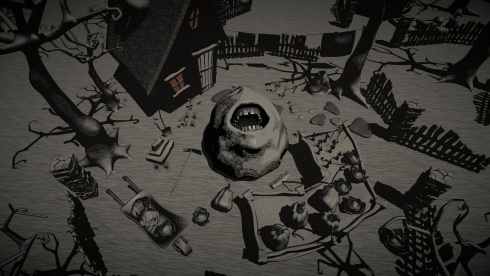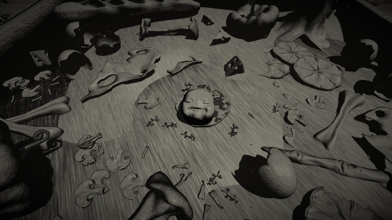 In Full Bloom — это о разрушительных последствиях бездумного поглощения, сюрреалистичный хоррор, превращающий концепцию заботы о ближнем в пугающую метафору бесконечного роста. Визуальное исполнение опирается на монохромную палитру, навевая ассоциации с мрачными работами Тима Бертона и Дзюндзи Ито. Центральным объектом выступает гротескная серая масса, представляющая собой гигантскую пасть космического масштаба. Роль опекуна этого лавкрафтианского создания неизбежно ведет к фатальному финалу, завершающемуся полным проглатыванием протагониста собственным подопечным. Отсутствие ярких красок подчеркивает дискомфортную атмосферу, заставляя задуматься о границах ответственности перед ненасытным организмом.
