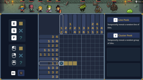 Glyph Quest, совмещающая элементы автоматических поединков и концепцию традиционных нонограмм, требует тщательного подбора авантюристов для формирования сбалансированного отряда. Доступный ростер наемников включает магов, целителей, танков, ловких разбойников, воинов и метких охотников. Экипировка этих компаньонов разнообразным оружием, крепкой броней или бижутерией позволяет повысить базовые показатели здоровья, защиты, силы и расторопности. Некоторые предметы инвентаря дополнительно наделяют подопечных полезными активными навыками. Подобные таланты способны давать точные подсказки или самостоятельно открывать неизвестные фрагменты поля, облегчая решение пространственных ребусов. Добытые в победоносных столкновениях золотые монеты и накопленный опыт служат главным инструментом перманентного усиления всей группы.
