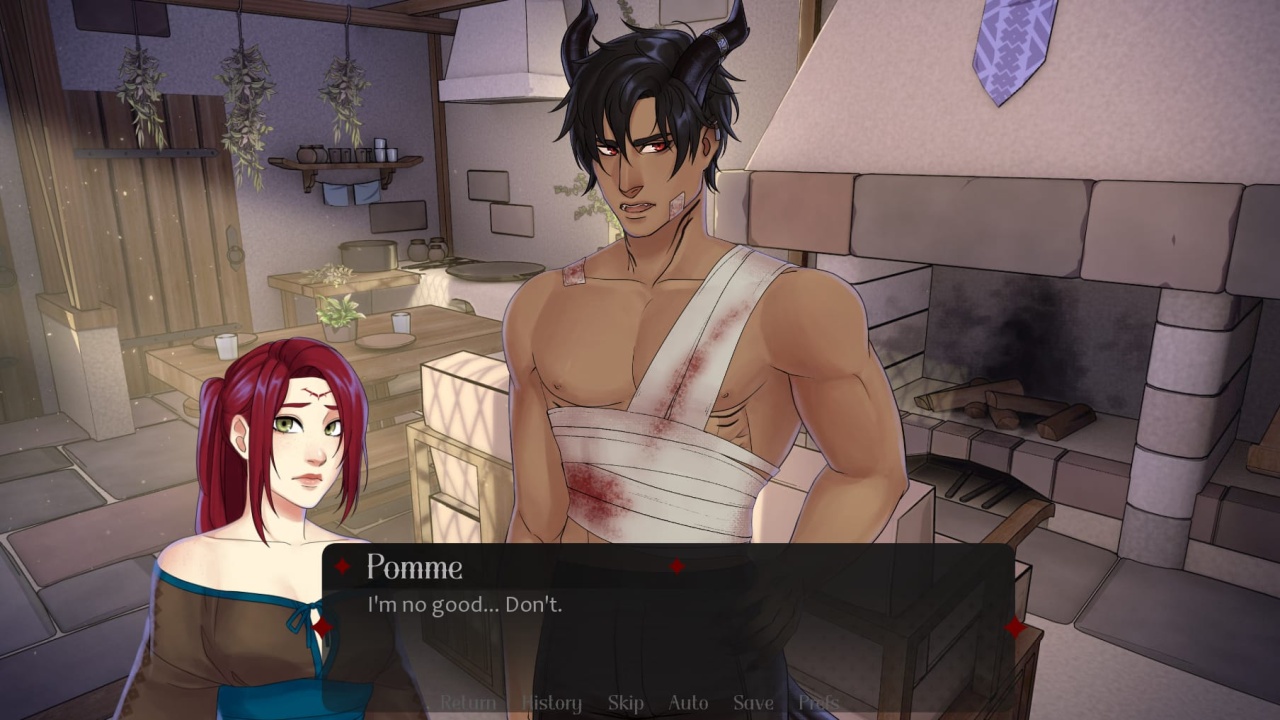 The Demons Apple — мрачная фэнтезийная новелла, сюжет которой повествует о вынужденном союзе деревенской травницы и опасного порождения тьмы. Девушка по имени Помм, занимающаяся сбором целебных трав, находит израненного незнакомца и пытается спасти его, не подозревая об истинной сущности гостя. Спасенный оказывается кровожадным демоном, утоляющим голод плотью своей целительницы перед побегом. После внезапного исчезновения существа их судьбы пересекаются вновь, заставляя героев объединиться ради выживания в предельно агрессивной среде. Данная история наполнена откровенными сценами и интимным напряжением, возникающим между хрупкой героиней и пугающим спутником.
