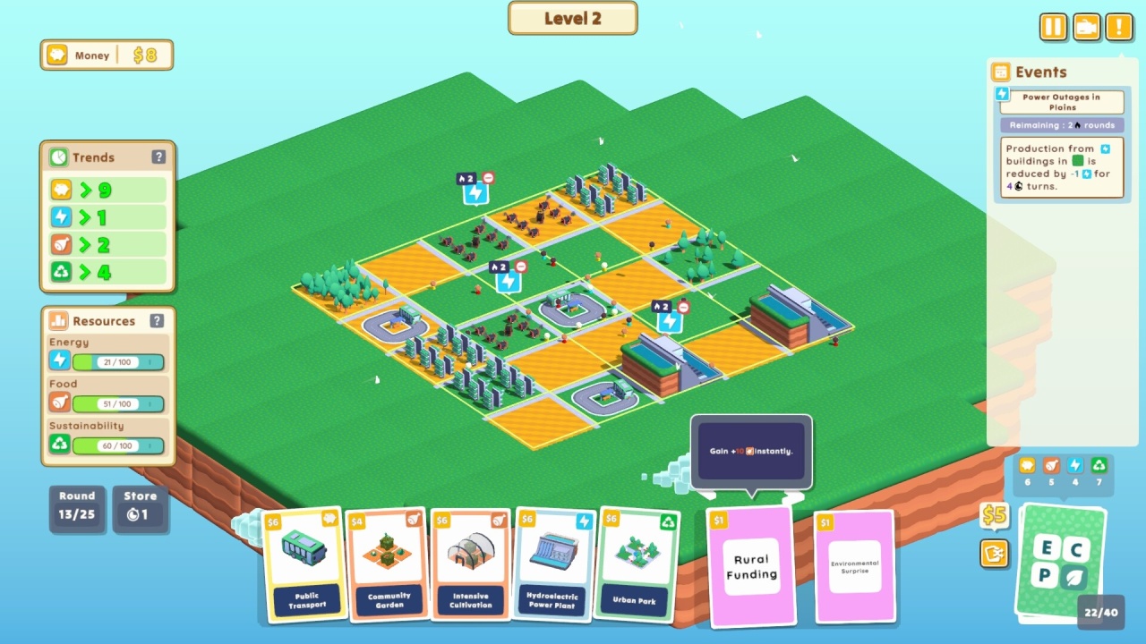 Eco City Planner, геймплей которого базируется на принципах осознанного урбанизма и карточного менеджмента, переносит в кресло ведущего эксперта по освоению пустующих территорий. Визуально лаконичная стилистика с мягкой цветовой палитрой маскирует под собой суровую проверку управленческих навыков, где цена просчета выражается в экологическом коллапсе. Скоротечные сессии продолжительностью до 30 минут позволяют концентрироваться на принятии волевых решений, не отвлекаясь на рутинное ожидание. Вместо привычного размещения моделей зданий здесь оперируют колодой, трансформирующей ландшафт и баланс сил.