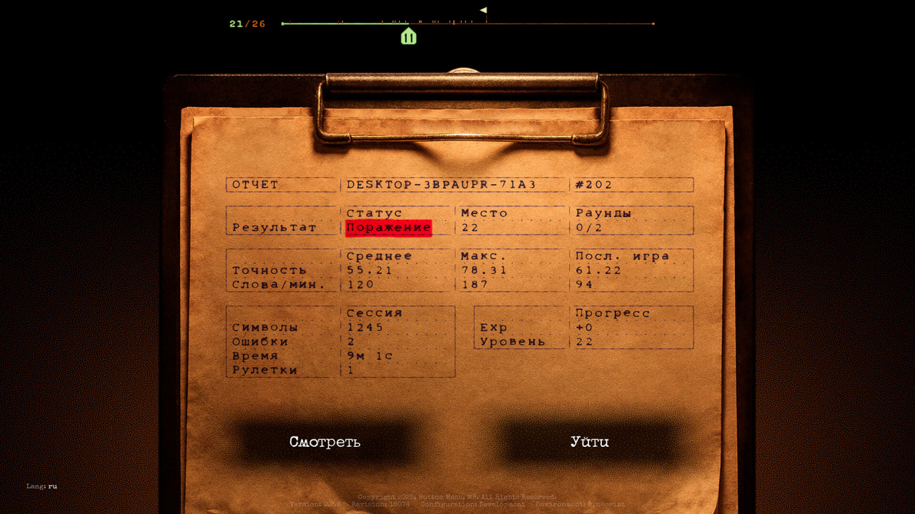 Глубокий сюжетный подтекст, скрытый в содержании предлагаемых пассажей, намекает на мрачную предысторию этого жестокого турнира. В масштабных столкновениях на 100 человек выживает лишь самый внимательный мастер, способный довести процесс до финала без единого сбоя. Специфический антураж с использованием антикварного оборудования придает происходящему особый эстетический шарм, контрастирующий с фатальностью наказания. Интенсивность раундов заставляет каждого максимально ответственно относиться к нажатию каждой клавиши. Такое сочетание интеллектуального вызова и первобытного страха перед выбыванием выделяет проект на фоне традиционных тренажеров. Финальное испытание нервов завершается триумфом одного, оставляя остальных за бортом истории под аккомпанемент сухих щелчков спускового механизма.