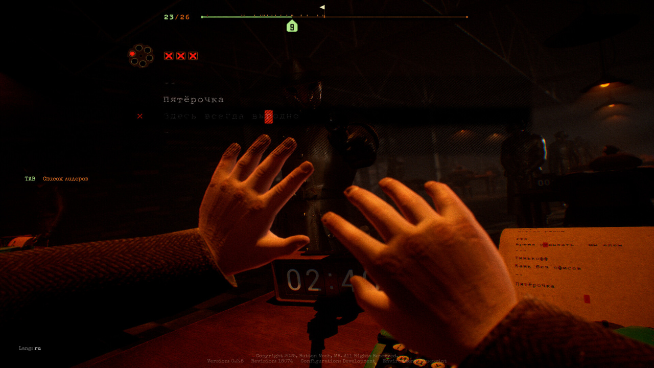 Тактическое противостояние в Final Sentence строится на балансе между скоростью и безошибочным исполнением, где хладнокровие ценится выше рефлексов. Геймерам предлагаются фразы разной сложности, включая кулинарные рецепты, киноцитаты и даже последовательности двоичного кода. Система детального мониторинга точности позволяет отслеживать индивидуальный прогресс и анализировать эффективность действий в критических ситуациях. Возможность слышать эмоциональные реакции оппонентов через встроенную связь лишь подогревает азарт и усиливает когнитивную нагрузку. Механика постепенного заполнения цилиндра патронами гарантирует, что любая заминка может стать роковой на поздних этапах состязания. Победа достается тому, кто сумеет сохранить ясность ума, игнорируя нарастающий хаос и звуковое давление со стороны лобби.