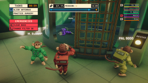 Go Ape Ship! — кооперативный симулятор выживания, в котором группа астрошимпанзе пытается бороздить просторы Солнечной системы на борту высокотехнологичного судна. Согласованность действий становится критически важным критерием при управлении межпланетным кораблем силами от 1 до 8 персонажей. Успех экспедиции напрямую зависит от слаженности экипажа, вынужденного ежесекундно заниматься массой операционных задач. Постепенное удаление от Земли сопровождается ростом сложности и частоты возникновения внештатных ситуаций, требующих молниеносной реакции каждого примата на борту. В распоряжении пилотов находятся 6 уровней сложности, включая бесконечный марафон для самых стойких первооткрывателей.