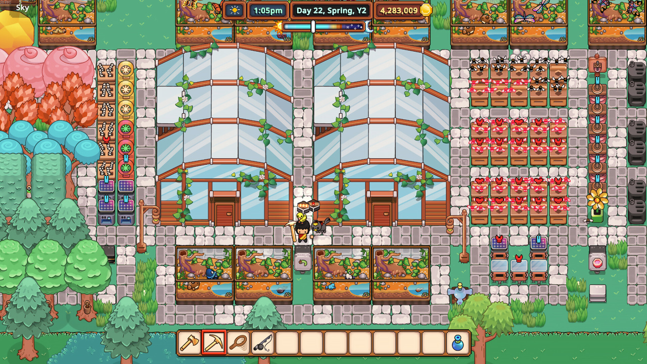 Центральным помощником героя выступает многофункциональный питомец, способный не только вспахивать землю и поливать грядки, но и телепортироваться по карте или сражаться с монстрами. Прогрессия персонажа реализована через поглощение специальных карт, наделяющих протагониста новыми талантами. Для автоматизации рутины используются дроны и лесные пикси, собирающие ресурсы и защищающие посевы. Несмотря на некоторую визуальную упрощенность и отсутствие интуитивного обучения, проект удерживает внимание благодаря наполнению музея и аквариума редкими находками. 4 уникальных лабиринта проверяют силу и ловкость, пока главный герой разбирается в тайнах своего прошлого.
