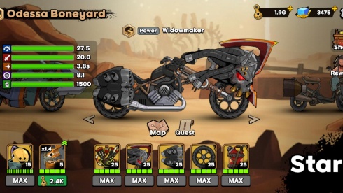 - комбинирование различных запчастей для создания максимально эффективной конфигурации байка;