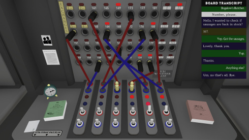 Switchboard — атмосферный исторический пазл, действие которого разворачивается в 1952 году на территории государства Эмпайр-Гранд. Протагонист берет на себя роль оператора телефонной станции в провинциальном поселении, пытаясь заработать средства на переезд своей семьи. Будни связиста проходят на фоне последствий глобального конфликта и растущей социальной напряженности, вызванной активизацией секретной военной базы Виндсер. Игровой процесс завязан на обработке входящих звонков, где за обыденными разговорами скрываются государственные тайны и планы подпольных группировок. Эффективная работа с оборудованием и поиск нужной информации осуществляются через: