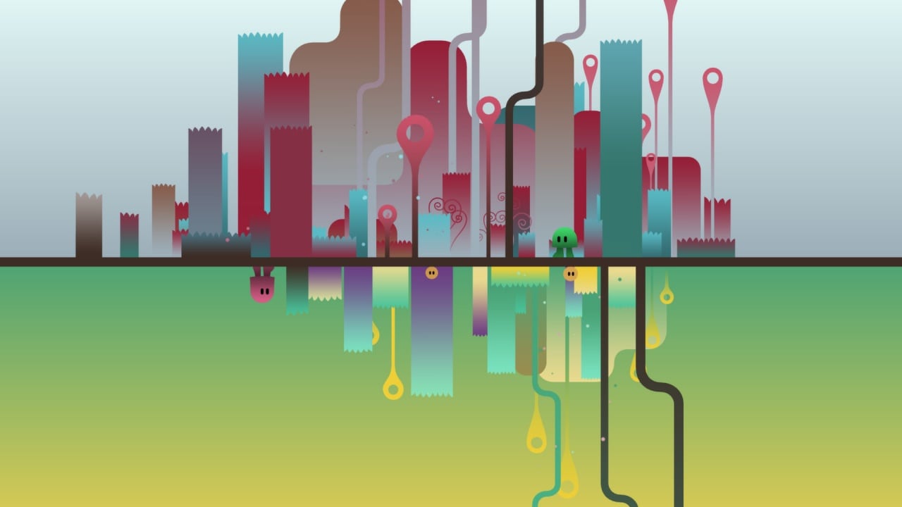 По центру экрана проходит сплошная горизонтальная линия, разделяющая его на две части. В обоих мирах существуют враги. Сверху находится их телесная неуязвимая оболочка, а снизу - астральное тело, при столкновении с которым враг умирает. Для этого стоит переместиться в другое измерение, что можно сделать с помощью мест, где линия прерывается. В нижнем мире действуют такие же принципы, но гравитация перевернута вверх ногами.