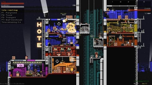 SuperFighter Deluxe v 1.3.7c Новая версия Полная версия Последняя Дата выхода 30 ноя. 2018 г. Разработчик MythoLogic Interactive Жанр Экшены, Инди, Аркады, Шутеры Очень положительные на основе 2961 обзоров в Steam 90% Обновлено 20 ноября 2025, 15:42 Список изменений SuperFighter Deluxe — это двухмерный экшен-платформер, в котором можно устроить хаотичные бои с другом онлайн или бесплатно сразиться против других оппонентов. Проект представляет собой напряженную сетевую игру, где до 8 бойцов выясняют отношения по интернету на одной из интерактивных арен. Интенсивные сражения по сети разворачиваются на небольших, но полностью разрушаемых локациях, причем доступ к ним открыт и на пиратке. Выживание в каждом раунде требует от геймеров не только удачи, но и стратегического мышления. Геймплей является уникальным сочетанием рукопашных схваток, стрельбы и элементов платформинга, вознаграждая за творческий подход к уничтожению соперников. Подвижные укрытия, взрывающиеся бочки и хрупкие окна становятся полноценными инструментами для достижения победы над врагами. Арсенал в SuperFighter Deluxe включает десятки видов оружия, позволяя использовать в бою как обычные бутылки и сигнальные ракетницы, так и тяжелое вооружение вроде базук или огнеметов. Перед началом матча предоставляется возможность детально настроить внешний вид своего бойца, комбинируя различную одежду и цветовые схемы. Для самых креативных предусмотрен мощный редактор карт, дающий возможность создавать собственные локации, такие как Alley, Canals или Hotel, и даже уникальные сценарии благодаря встроенной системе скриптов. Скачать торрент Скриншоты Видео из игры Скачать SuperFighter Deluxe Тип релиза Пиратка (Игра по сети) Версия v 1.3.7c (Полная) Последняя Размер 413 МБ Интерфейс Английский Озвучка Отсутствует Настройка для сетевой игры: Скачать .torrent торрент файл Скачать БЕЗ торрента прямая ссылка через uTorria Системные требования ОС: Vista/ 7 / 8 / 10 Процессор: Dual Core 2.2 GHz Оперативная память: 2 GB Видеокарта: 512 MB Место на диске: 1 ГБ Пиксельная графика, Игры в 2D, Насилие, Смешная, Платформеры, Физика, Редактор уровней, Отличный саундтрек