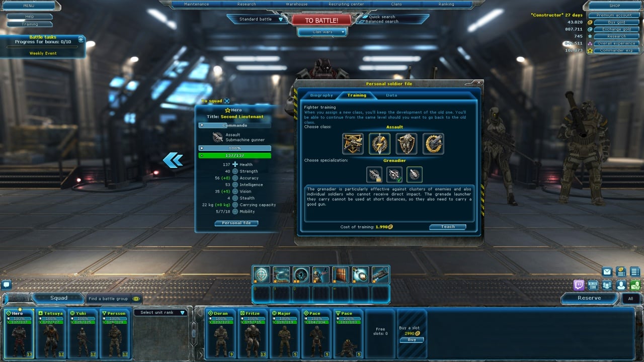 Зарабатывайте опыт и внутриигровую валюту, сражаясь с противниками и побеждая в битвах. Исследуйте множество видов вооружения и экипировки. На ваш выбор доступно более 100 огнестрельного оружия. Оснастите своих подопечных автоматами, пулеметами или реактивными гранатометами. Каждый наемник умеет обращаться лишь с несколькими видами оружия.