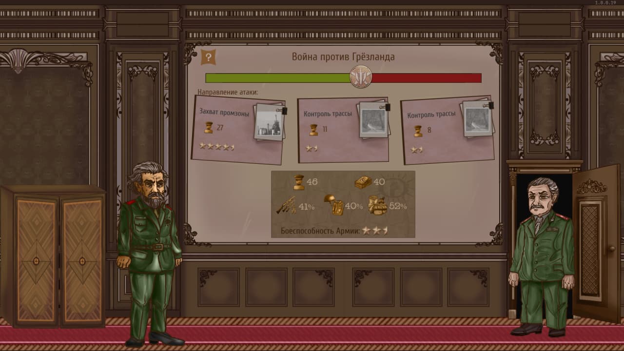Dictator Simulator: Gradnar RUS v Build 20963394 Новая версия Полная версия Последняя Дата выхода 21 ноя. 2025 Разработчик GortagonGame Жанр Симуляторы, Стратегии, Визуальная новелла, Инди Очень положительные на основе 67 обзоров в Steam 97% Обновлено 10 декабря 2025, 09:26 Список изменений Dictator Simulator: Gradnar представляет собой политическую симуляцию, где каждое действие имеет далеко идущие последствия для целой нации. Взяв под контроль вымышленное восточноевропейское государство Граднар, протагонист Вислан Гацколка вынужден непрерывно следить за состоянием страны. Крах режима становится неизбежным, если хотя бы один из пяти ключевых показателей достигнет нулевой отметки. Экономическая стабильность, лояльность граждан, партийная поддержка, уровень контроля и мощь армии требуют постоянного внимания, ведь любая ошибка может спровоцировать государственный переворот и положить конец правлению диктатора. Удержание власти требует от правителя комплексного подхода к управлению. Его повседневная деятельность включает в себя множество обязанностей: взаимодействие с соседними государствами через дипломатию или военные действия; проведение внутренней политики и издание соответствующих указов; реагирование на внутренние угрозы и непредвиденные события; контроль за личными финансами и государственным бюджетом. Внешнеполитические конфликты в Dictator Simulator: Gradnar реализованы посредством карточной механики, где исход сражений зависит от тактического планирования и грамотного использования ресурсов. Победа в таких дуэлях позволяет присоединять к своей империи новые территории. Одной из центральных дилемм становится выбор между общественным благом и личным обогащением. Геймер волен тратить казну на социальные программы или приобретать предметы роскоши, от дворцов до произведений искусства, пополняя свою сокровищницу. Нелинейное повествование, формируемое через диалоги с советниками, включая компаньона Рибана, и принятые решения, ведет к одной из множества концовок. Судьба Граднара, который может стать процветающей демократией или жестокой тиранией, полностью находится в руках правителя. Скачать торрент Скриншоты Показать больше Скачать Dictator Simulator: Gradnar Тип релиза Пиратка (Таблетка: Не требуется) Версия v Build 20963394 (Полная) Последняя Размер 39.07 МБ Интерфейс Русский Озвучка Отсутствует Установка: Скачать .torrent торрент файл Скачать БЕЗ торрента прямая ссылка через uTorria Альтернативные раздачи Прямые ссылки Облачные хранилища v Build 20963394 40 МБ Показать Системные требования ОС: Windows 10 (64-bit) Процессор: 2 ггц AMD Athlon 64 Оперативная память: 2 ГБ Видеокарта: 512 МБ Место на диске: 500 МБ Решения с последствиями, Антиутопия, Глобальные стратегии, Политический симулятор, Карточная игра, Пошаговые стратегии, 80-е, Пошаговая тактика, Игры в 2D, Симулятор жизни, Война, Рисованная графика, Стилизация, Атмосферная, Нелинейная, Игры с геймпадом