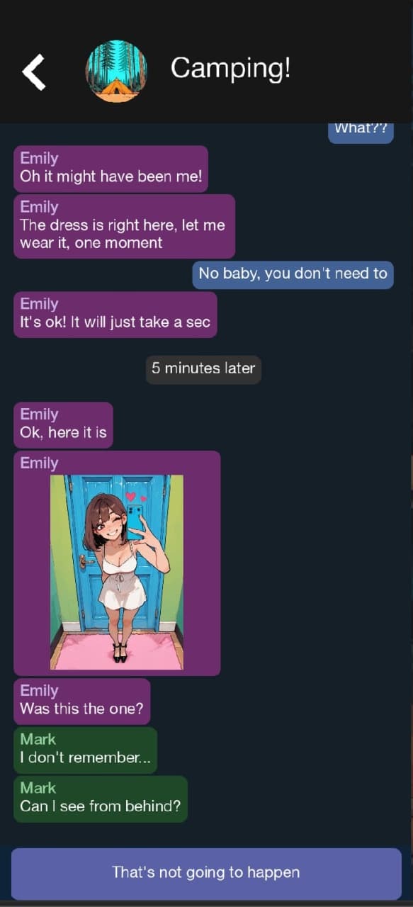 My NTR Girlfriend Goes Camping! v 0.7.3 Новая версия Полная версия Последняя Дата выхода 2025 Разработчик phonegames Жанр Обновлено 13 января 2026, 17:37 Список изменений My NTR Girlfriend Goes Camping! — визуальная новелла, геймплей которой построен на симуляции общения в мобильном чате, где каждое решение влияет на развитие событий. Повествование предлагает несколько путей развития, хотя ключевые события остаются неизменными. Именно от решений геймера зависит, как будут прожиты эти события и насколько далеко зайдут отношения персонажей. Интересной деталью является возможность определять цвет кожи мужских персонажей, что напрямую влияет на некоторые диалоговые ветки. Проект предлагает несколько вариантов прохождения, включая стандартный NTR-сценарий с неизбежным адюльтером. Для тех, кто предпочитает иную перспективу, предусмотрен NTS-путь, а также гибридный режим soft-NTS, сохраняющий интригу измены, но с дополнительными диалогами. Сюжетная завязка концентрируется на девушке по имени Эмили, которая отправляется в поход с друзьями протагониста. События My NTR Girlfriend Goes Camping! являются самостоятельной историей, разворачивающейся с уже знакомыми по прошлому проекту героями. При этом для полного погружения в происходящее знание предыдущей части совершенно не требуется. Весь процесс взаимодействия с миром и персонажами имитирует переписку в мессенджере. Наблюдение за развитием событий через экран смартфона позволяет стать свидетелем откровенных сцен и предательства, раскрывающегося в получаемых сообщениях. Скачать торрент Скриншоты Скачать БЕЗ торрента прямая ссылка через uTorria Альтернативные раздачи Прямые ссылки Облачные хранилища v 0.7.3 158 МБ Показать Системные требования ОС: 7, 8, 10, 11 Процессор: Dual Core 2.4 GHz Оперативная память: 2 ГБ Видеокарта: 2 ГБ Нагота
