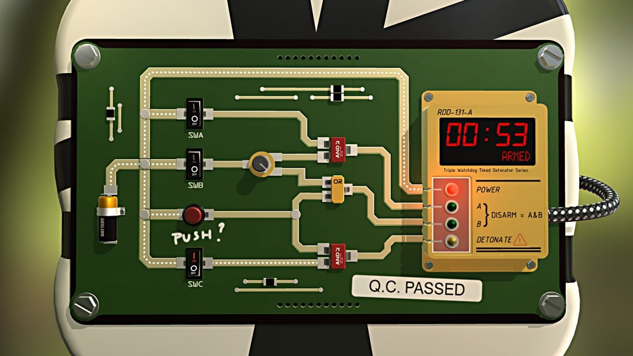 Bomb Squad Academy v 1.5 Новая версия Полная версия Последняя Дата выхода 27 мар. 2017 Разработчик Systemic Games Жанр Симуляторы, Инди, Стратегии Очень положительные на основе 404 обзоров в Steam 86% Обновлено 26 января 2025, 00:06 Список изменений Bomb Squad Academy - это крайний экзамен перед окончанием учебного курса для минеров. Мастер установил 3 тренировочные бомбы для игрока и его команды, чтобы обезвредить их. В действительности оказывается, что сделать их безопасными просто невозможно. Мины рано или поздно взорвутся, но чтобы достичь победы все же нужно перерезать медные провода, не провоцируя взрыва. Чтобы достичь победы, придется взять в руки кусачки и трястись над каждым кабелем, ведь ночка обещает быть взрывоопасной. В Bomb Squad Academy есть 4 карточные колоды, каждая карта которой представляет 4 кабеля детонатора, и трек-трекер. В каждом раунде участники тайно решают (а затем единовременно раскрывают) проволоку, которую будут резать в указанном уровне. При желании можно отказаться это сделать, кликнув кнопку Подождите и предотвращая, тем самым, разрезание проволоки. После того как действия раскрыты, указанные провода перерезаются путем переворачивания карт из этих колод. Когда карта переворачивается, ее значение показывает, насколько далеко спусковой крючок переместится вниз по треку триггера и сколько очков заработано. Одна только резка кабеля стоит намного дороже, чем резка той же проволоки, что и для других участников. Стоит нажать на курки слишком далеко, как раздастся взрыв. Тот, кто вызывает сработку, теряет очки. В игре можно нарушать правила, с помощью специальных инструментов, чтобы быстрее достичь победы. Скачать торрент Скриншоты Показать больше Видео из игры Скачать Bomb Squad Academy Тип релиза Лицензия (Таблетка: Не требуется) Версия v 1.5 (Полная) Последняя Размер 78 МБ Интерфейс Английский Озвучка Английская Установка: Скачать .torrent торрент файл Скачать БЕЗ торрента прямая ссылка через uTorria Системные требования ОС: 7, 8, 10 Процессор: 2.0 GHz Оперативная память: 2 ГБ Видеокарта: 512 МБ Место на диске: 500 МБ Казуальная, Головоломка, Логика