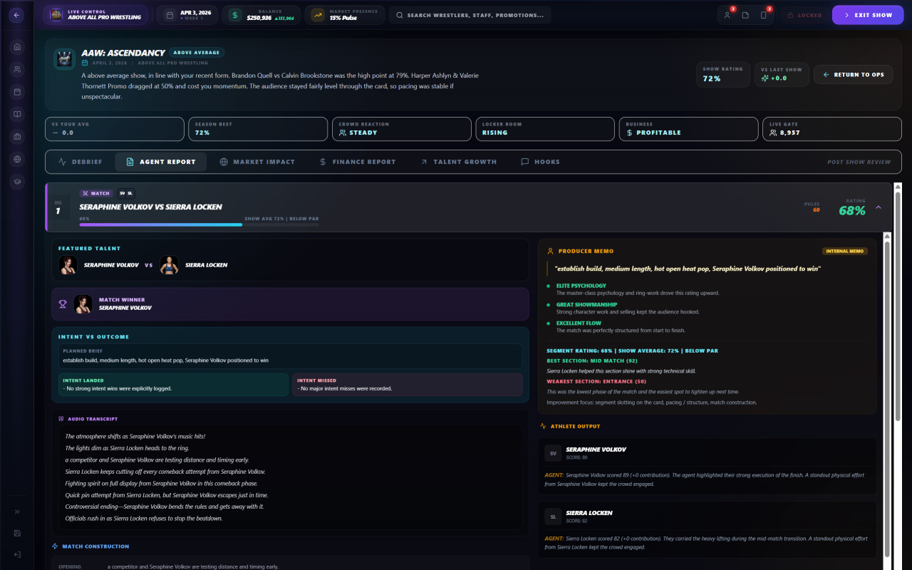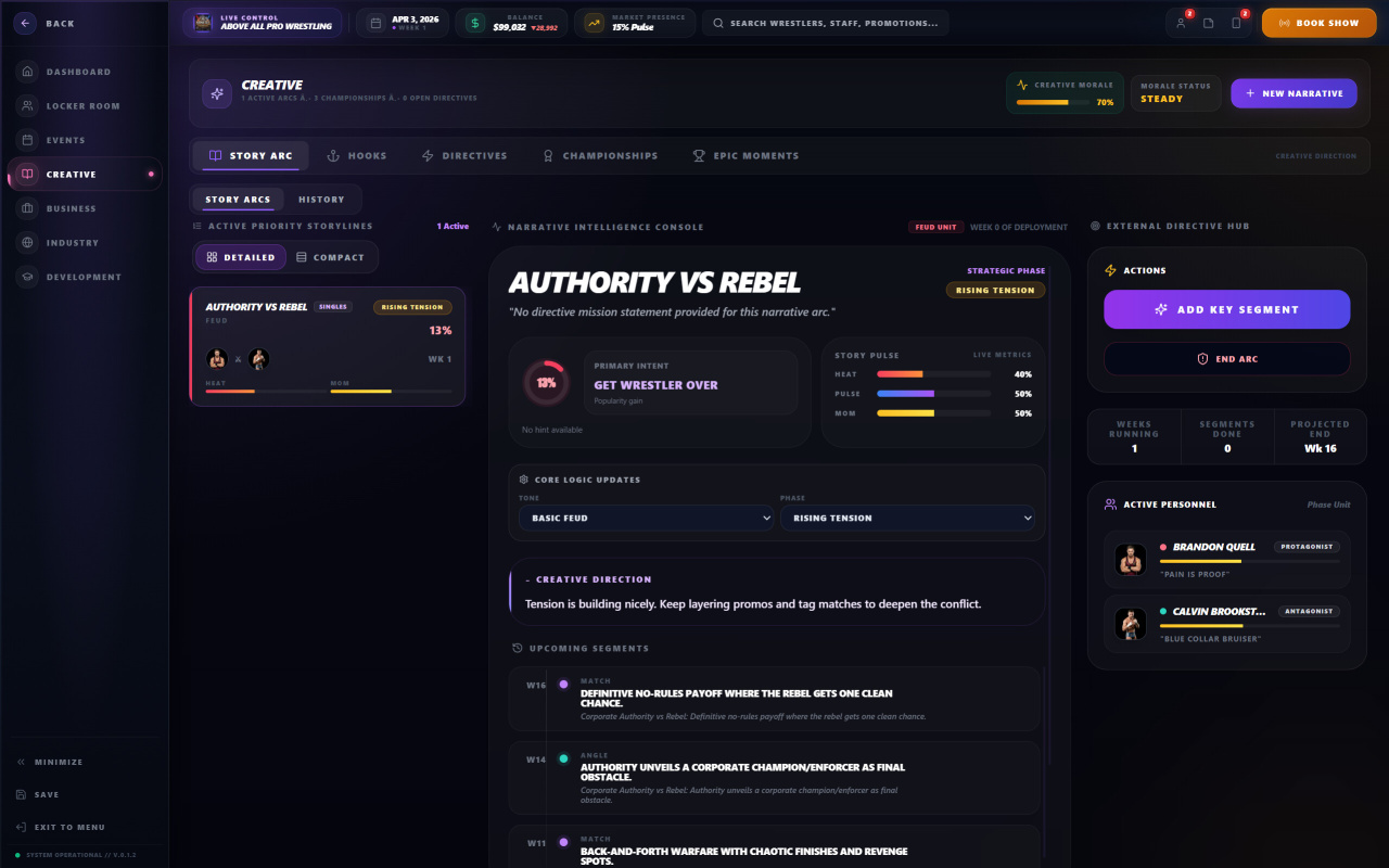 Believr Pro Wrestling v Build 22331566 Новая версия Ранний Доступ Последняя в альт. раздачах Дата выхода 29 янв. 2026 Разработчик Believr Games Жанр Симуляторы, Инди, Стратегии Положительные на основе 18 обзоров в Steam 83% Обновлено 2 февраля 2026, 11:39 Список изменений Believr Pro Wrestling становится для ценителей жанра настоящим испытанием, поскольку успех здесь зависит не от идеального планирования, а от умения справляться с неопределенностью. Каждое принятое управленческое решение влечет за собой долгосрочные последствия, которые могут проявиться спустя месяцы. Исход любого поединка никогда не предопределен, а на результат влияют такие факторы, как импульс, эго атлетов, выбранный момент и общий контекст событий. Мир профессионального рестлинга постоянно развивается, а конкурирующие промоушены под управлением искусственного интеллекта адаптируют свои стратегии, заставляя постоянно быть начеку. Даже верный на первый взгляд поступок может привести к провалу. Эффективное руководство организацией требует полного контроля над всеми аспектами шоу, от еженедельных выступлений до масштабных платных трансляций. Проект Believr Pro Wrestling предоставляет инструментарий для глубокой проработки событий. Для достижения вершин индустрии необходимо: пошагово выстраивать ход каждого поединка, определяя его стиль и ключевые моменты. формировать содержание выступлений и конфронтаций, избегая шаблонных результатов. следить за моралью, популярностью и эго бойцов, влияя на их карьерный рост. учитывать влияние титулов и победных серий на поведение и амбиции атлетов. Скачать торрент Скриншоты Показать больше Скачать Believr Pro Wrestling Ранний доступ Тип релиза Пиратка (Таблетка: Не требуется) Версия v Build 21749487 Размер 1 ГБ Интерфейс Английский Озвучка Английская Установка: Примечание Более актуальная версия: v Build 22331566находится в блоке - Альтернативные раздачи. Скачать .torrent торрент файл Скачать БЕЗ торрента прямая ссылка через uTorria Альтернативные раздачи Прямые ссылки Облачные хранилища v Build 22331566 6 ГБ Показать Системные требования ОС: Windows 7, 8, 10 (64-bit) Процессор: dual-core 2.0 ГГц Intel Core i3-2100 / AMD a8-5600k Оперативная память: 4 ГБ Видеокарта: Intel HD Graphics 4000 / AMD Radeon r5 / Nvidia GeForce GTX 730 Место на диске: 800 МБ Менеджмент, Песочница, Иммерсивный симулятор, Управление ресурсами, Кастомизация персонажа, Кинематографичная, Динамическое повествование, Обучение, Игры в 2D, Стилизация