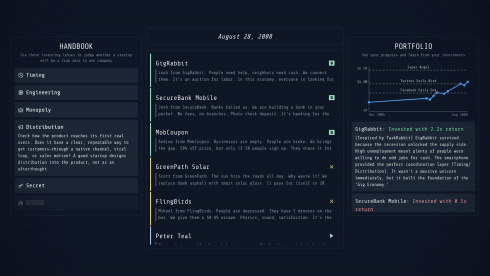 ZeroOne Terminal v Build 21817792 Новая версия Полная версия Последняя Дата выхода 1 фев. 2026 Разработчик Jolt Жанр Стратегии, Симуляторы, Инди Обновлено 7 февраля 2026, 17:35 Список изменений ZeroOne Terminal — это симулятор венчурного инвестора, предлагающий совершить путешествие по 20-летней истории развития технологической индустрии. Игроку отводится роль аналитика, чья задача — определить будущих гигантов рынка на основе их бизнес-моделей. В период с 2000 по 2020 год предстоит оценивать множество стартапов, прототипами для которых послужили реально существовавшие компании. Весь процесс взаимодействия с основателями проектов реализован через текстовый интерфейс, стилизованный под командную строку. Задавая правильные вопросы, необходимо выявлять сильные и слабые стороны каждой идеи, чтобы сформировать прибыльный инвестиционный портфель. Процесс принятия решений осложняется внешними факторами, ведь симуляция учитывает рыночные циклы, технологические прорывы и финансовые кризисы. Неудачные вложения становятся поводом для анализа собственных ошибок, что позволяет оттачивать интуицию. Успех в ZeroOne Terminal напрямую зависит от способности применять комплексный подход к оценке перспективности стартапа. Для этого необходимо анализировать каждую компанию с нескольких ракурсов. Критерии оценки проектов: Своевременность — готовность рынка к появлению продукта или услуги. Технология — наличие десятикратного превосходства над существующими аналогами. Секрет — обладание уникальными знаниями, недоступными для конкурентов. Монополия — потенциал для доминирования в выбранной рыночной нише. Дистрибуция — наличие действенных каналов для привлечения аудитории. Команда — способность коллектива реализовать поставленные задачи. Долговечность — жизнеспособность бизнес-модели в перспективе 10 лет. Скачать торрент Скриншоты Показать больше Скачать БЕЗ торрента прямая ссылка через uTorria Альтернативные раздачи Прямые ссылки Облачные хранилища v Build 21817792 10 МБ Показать Системные требования ОС: Windows 10 (64-bit) Процессор: Intel Core i3 Оперативная память: 4 ГБ Видеокарта: Intel HD Graphics Место на диске: 300 МБ Решения с последствиями, Логика, Пошаговые стратегии, Экономика, Расследования, Абстрактная, Минимализм, Стилизация, Наука, Капитализм