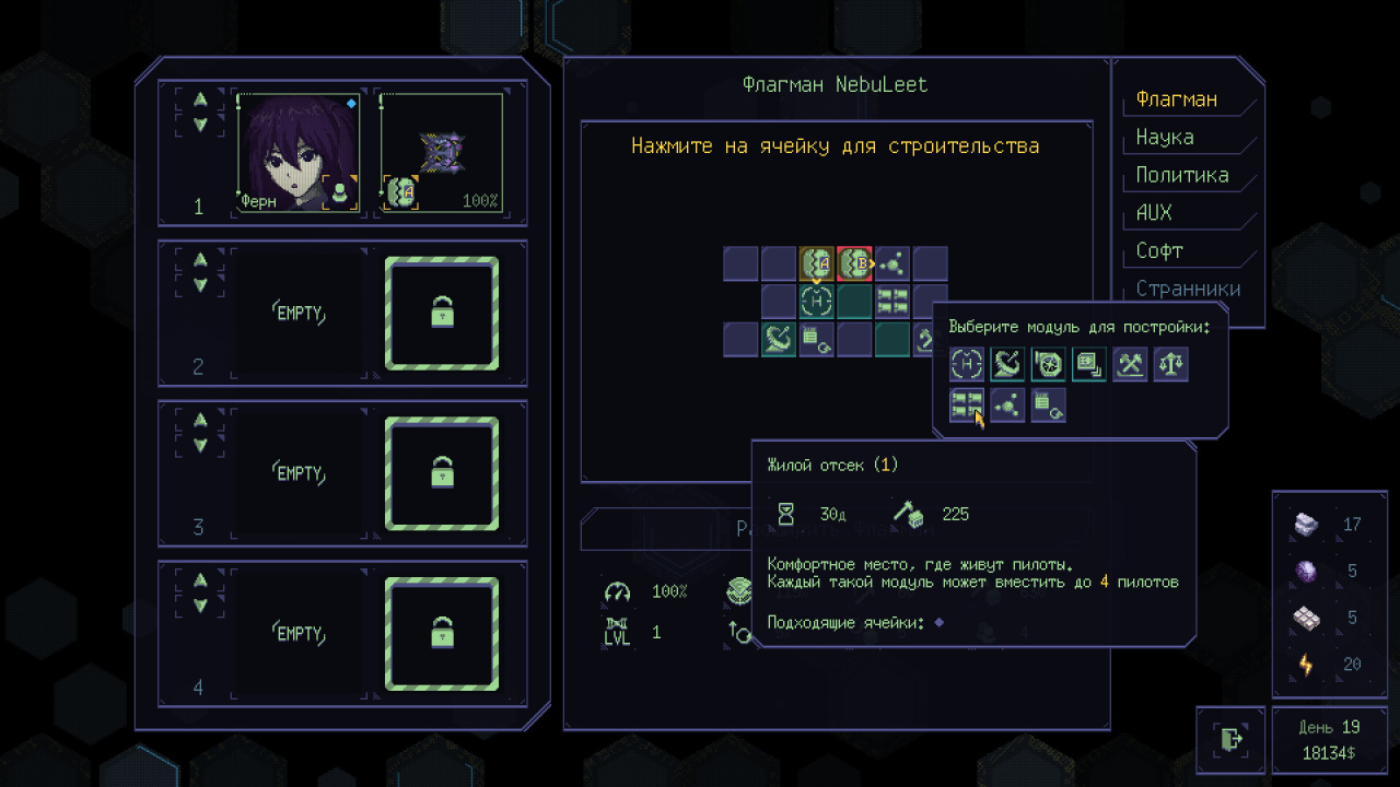NebuLeet RUS Дата выхода 3 дек. 2025 Разработчик quasilyte Жанр RPG, Симуляторы, Стратегии, Приключения, Инди Положительные на основе 43 обзоров в Steam 91% Торрент ожидается Добавьте в избранное, чтобы следить NebuLeet — гибрид стратегии и ролевой игры, где успех определяется не скоростью реакции, а глубиной тактического планирования и программирования. Основой геймплея выступает двухслойная боевая система. На первый взгляд она напоминает автобаттлер, однако под этим скрывается комплексная среда для создания алгоритмов поведения. Любое судно начинается с чистого листа и собирается из отдельных модулей, включая корпуса, двигатели и вооружение. Каждая деталь обладает уникальными характеристиками, что делает процесс проектирования решающим фактором для исхода сражений. Продуманные алгоритмы позволяют небольшому флоту одерживать верх над технологически превосходящим противником, используя его уязвимости. Победа достигается за счет грамотно выстроенной логики, а не превосходства в огневой мощи. Ключевые аспекты игрового процесса: Сборка уникальных судов из отдельных компонентов с возможностью делиться чертежами с другими игроками. Создание поведенческих моделей для кораблей и андроидов при помощи интуитивно понятного визуального языка. Противостояние процедурно генерируемым кризисам и событиям в мире с живой экономикой и дипломатией фракций. Найм пилотов, финансирование исследований, контроль производственных цепочек и возведение укрепленных баз. Игроку отводится роль командующего военизированной группировкой, противостоящей угрозе растущего космического культа. Вселенная NebuLeet постоянно эволюционирует, генерируя новые угрозы и возможности в каждом прохождении. Принятые решения напрямую влияют на дипломатические отношения с другими фракциями, позволяя заключать союзы или действовать в качестве капера во время крупных конфликтов. Помимо сражений, необходимо заниматься менеджментом организации. Это включает в себя распределение ролей для нанятых пилотов, открытие новых технологий и надзор за производством для восполнения потерь флота или его расширения. Защита баз и обеспечение стабильного финансирования являются неотъемлемой частью пути к доминированию в секторе. Скачать торрент Скриншоты Показать больше Видео из игры Скачать БЕЗ торрента прямая ссылка через uTorria Системные требования ОС: Windows 7, 8, 10 (64-bit) Процессор: 2-4 cores, e.g. Intel gen6-7 Оперативная память: 1 ГБ Видеокарта: integrated Graphics Место на диске: 256 МБ Программирование, Тактика, Открытый мир, Песочница, Игры в 2D, Космос, Пиксельная графика, Научная фантастика, Будущее, Бой, Строительство базы, Менеджмент