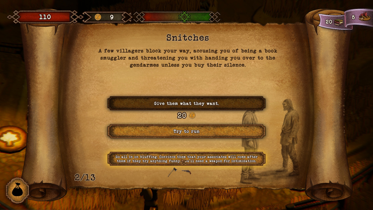 Book Smugglers RUS v Build 21969179 Новая версия Полная версия Последняя Дата выхода 16 фев. 2026 Разработчик FLUXO GAMES Жанр Приключения, Визуальная новелла, Симуляторы Положительные на основе 24 обзоров в Steam 92% Обновлено 28 февраля 2026, 09:59 Список изменений Book Smugglers, выступая историческим квестом с механикой point-and-click, ставит во главу угла грамотное распределение запасов провизии, финансов и экипировки. Тщательное планирование инвентаря напрямую определяет доступный спектр действий во время опасных вылазок. Каждое принятое геймером решение обладает колоссальным весом, а система вариативности способна генерировать разные последствия даже при выборе идентичных реплик. Подобная непредсказуемость отлично подчеркивает суровые реалии 19 века на территории Литвы. В этот период земли находились под жестким диктатом царизма, активно искоренявшего местную культуру посредством цензуры. Масштаб развернувшегося тогда сопротивления оказался настолько беспрецедентным, что ЮНЕСКО присвоило данному феномену статус объекта всемирного наследия. Главная роль отведена члену тайной сети книгонош, рискующему свободой ради спасения родного языка. Прохождение Book Smugglers подразумевает постоянный контакт с реально существовавшими историческими личностями. Чтобы успешно противостоять гнету Российской империи и привести сюжет к одной из нескольких возможных концовок, протагонисту предстоит: доставлять нелегальную литературу в скрытые от властей учебные заведения; заниматься распространением независимых печатных изданий среди населения; расшифровывать закодированные тексты для получения важных сведений; преодолевать головоломки ради сохранения тайны подполья. Скачать торрент Скриншоты Показать больше Скачать Book Smugglers Тип релиза RePack от FitGirl Версия v Build 21969179 (Полная) Последняя Размер 700.55 МБ Интерфейс Русский Озвучка Отсутствует Особенности репака: Скачать .torrent торрент файл Скачать БЕЗ торрента прямая ссылка через uTorria Альтернативные раздачи Прямые ссылки Облачные хранилища v Build 21969179 2.9 ГБ Показать Системные требования ОС: Windows 7, 8, 10, 11 Процессор: 1.2 ГГц Intel Core i5 Оперативная память: 8 ГБ Видеокарта: dx10, dx11, dx12 Место на диске: 3 ГБ Решения с последствиями, Глубокий сюжет, Управление ресурсами, Point and click, Историческая, Расследования, Выбери себе приключение, Политический симулятор, Менеджмент инвентаря, Рисованная графика, Эмоциональная, Исследования, Изометрия, Атмосферная, Криминал