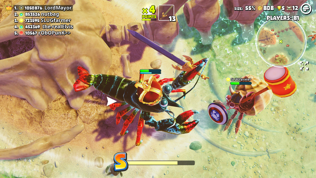 King of Crabs RUS Дата выхода 25 сен. 2023 Разработчик Robot Squid Жанр Шутеры, Аркады, Экшены, Выживание Торрент ожидается Добавьте в избранное, чтобы следить King of Crabs, являясь масштабной ареной для выживания морской фауны, сталкивает 100 геймеров на территории обширного острова. Процесс доминирования в прибрежных водах требует постоянного поглощения мелких обитателей океана. Поедание креветок и черепах гарантирует увеличение габаритов панциря. Вместе с размерами происходит пропорциональный рост атакующих характеристик. Для получения тактического преимущества предстоит исследовать песчаные пляжи. Там спрятано разнообразное вооружение. Найденные бейсбольные биты или острые мечи значительно ускоряют устранение конкурентов. В качестве импровизированной защиты отлично служат панцири рептилий и элементы выброшенного мусора. Финальная цель матча сводится к завоеванию титула абсолютного монарха побережья. Достичь этого статуса возможно исключительно через уничтожение оппонентов. Заработанные во время схваток монеты позволяют приобретать экстравагантные костюмы. Финансы также расходуются на улучшение базовых параметров подопечных. Совместное прохождение PvE-формата предлагает объединить усилия с товарищами. Группам предстоит сражаться против отрядов под управлением искусственного интеллекта. Внутри King of Crabs реализована глубокая система прогрессии. Она мотивирует постоянно расширять личную коллекцию глубоководных хищников. Контентное наполнение арены: Королевский краб — массивный хищник, созданный для подавления толпы врагов. Креветка-богомол — экзотический боец, наносящий сокрушительные удары по крепкой броне неприятелей. Классический омар — сбалансированный юнит, идеально подходящий для изучения принципов выживания. Кооперативный формат — командный вариант матчмейкинга для совместной зачистки локаций от ботов. Скачать торрент Скриншоты Показать больше Видео из игры Скачать БЕЗ торрента прямая ссылка через uTorria Системные требования ОС: Windows Vista, 7, 8, 10 (64-bit) Процессор: 2.0 ГГц dual Core Оперативная память: 512 МБ Видеокарта: GeForce 8800 Место на диске: 120 МБ Исследования, Игрок против ИИ, Слэшер, Шутер с видом сверху, Королевская битва, Чёрный юмор, Реализм, Кастомизация персонажа, Смешная, Казуальная, Цветастая, Для всей семьи, Природа, Игры с геймпадом