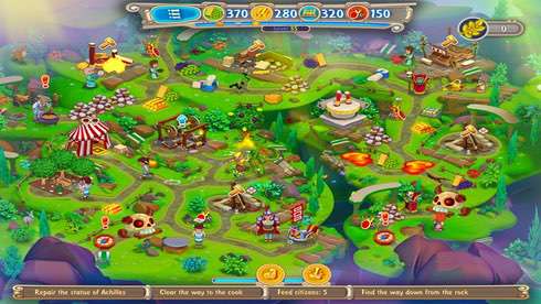 В игре есть карта на которой расположены все местонахождения необходимых ресурсов. Простые жители занимаются решением поставленной задачи, а Гермес продолжает борьбу с врагами, а также не забывает сделать за восстановлением храмов жертвенников. Игроку изначально предоставляется выбор уровня сложности, их всего три: простой, средний и сложный (рекомендуется для закаленных пользователей).