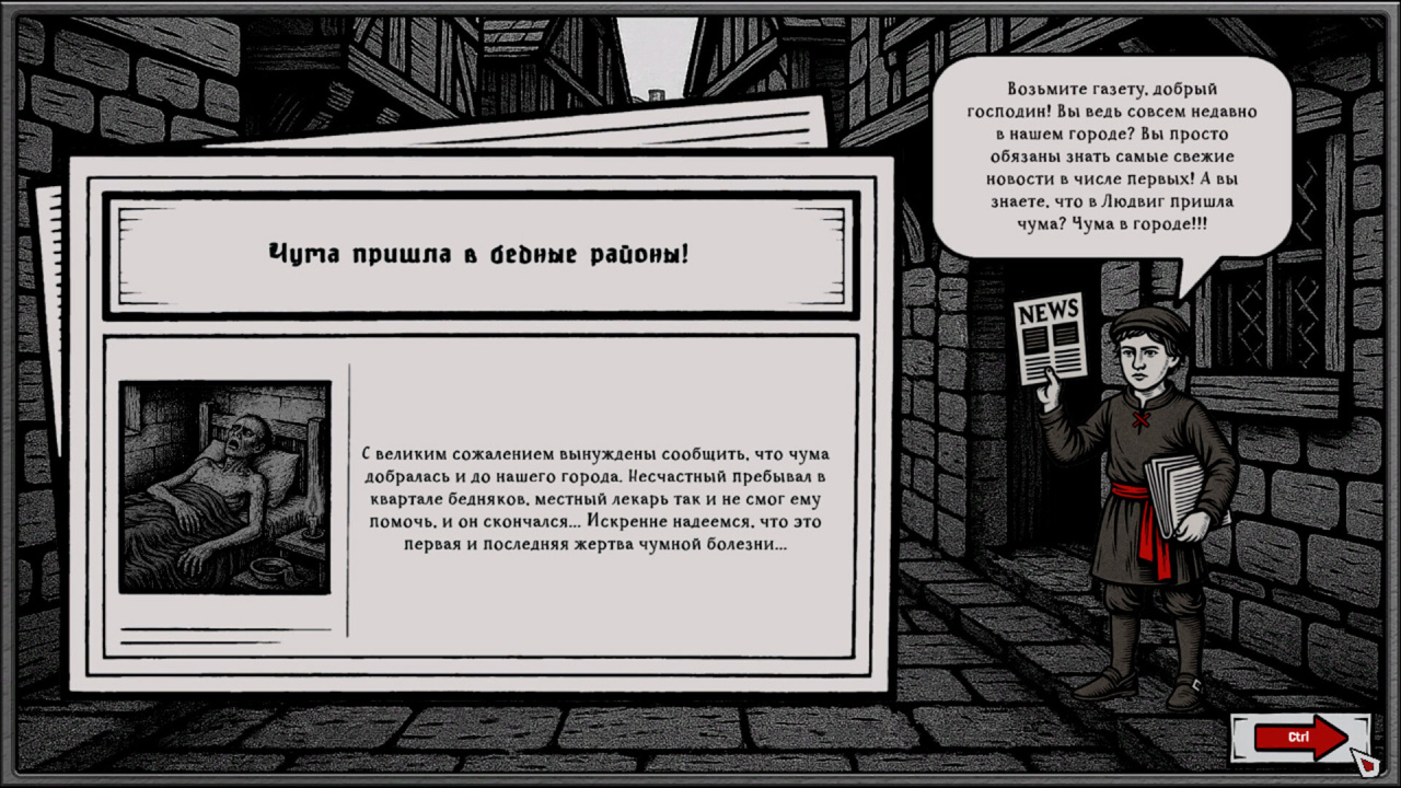 The Book of Plagues RUS v Build 21715530 Новая версия Полная версия Последняя Дата выхода 16 янв. 2026 Разработчик DiaMMax Games Жанр Визуальная новелла, Аркады, Симуляторы, Приключения, Инди Положительные на основе 17 обзоров в Steam 94% Обновлено 4 апреля 2026, 23:20 Список изменений The Book of Plagues — мрачный симулятор средневекового выживания, сюжет которого разворачивается в охваченном смертоносной эпидемией городе Людвиг. Главный персонаж принимает на себя обязанности чумного лекаря, становясь последним оплотом между остатками порядка и всепоглощающим хаосом. Процесс спасения населения сопряжен с необходимостью принимать чудовищные решения, включая принудительную изоляцию кварталов или уничтожение огнем зараженных жилищ. Каждое действие имеет свою цену, ведь мор не щадит ни богатых купцов, ни нищих бродяг. Улицы Людвига завалены телами, а выжившие пребывают в плену безумия и страха. Взаимодействие с различными фракциями, такими как Инквизиция, Магистрат и Гильдия торговцев, вынуждает постоянно балансировать между интересами власти и нуждами простых людей. Проект The Book of Plagues предлагает глубокую систему алхимии, позволяющую изучать редкие рецепты и создавать мощные эликсиры для исцеления больных. Еженедельное планирование ресурсов и участие в напряженных мини-играх определяют шансы на выживание очередной группы пациентов. Единственным спутником протагониста выступает ворон по имени Бэйн, чьи язвительные комментарии заставляют сомневаться в психическом здоровье доктора. Атмосфера психологического триллера подчеркивается визуальным стилем, акцентирующим внимание на упадке и мраке угасающей цивилизации. Исследование заброшенных поселений и изучение фрагментов забытой истории помогают восстановить картину происходящего бедствия. Звуковое сопровождение, наполненное тревожными тонами, усиливает чувство дискомфорта при перемещении по зараженным зонам. Финальный исход зависит от выбранной стратегии поведения, превращая лекаря либо в истинного спасителя, либо в последнего палача обреченного города. Скачать торрент Скриншоты Показать больше Видео из игры Скачать БЕЗ торрента прямая ссылка через uTorria Альтернативные раздачи Прямые ссылки Облачные хранилища v Build 21715530 150 МБ Показать Системные требования ОС: Windows 7, 8, 10 (64-bit) Процессор: Intel Core Duo e8400 3.0 ггц / AMD Athlon 64 XT 6000+ 3.0 ГГц Оперативная память: 4 ГБ Видеокарта: Nvidia GeForce 9800gtx+ Место на диске: 2 ГБ Idle-игра, Политический симулятор, Средневековье, Игры в 2D, Смешная, Чёрный юмор, Глубокий сюжет, Несколько концовок, Решения с последствиями, Стилизация, Атмосферная, Эмоциональная, Мрачная, Игры с геймпадом