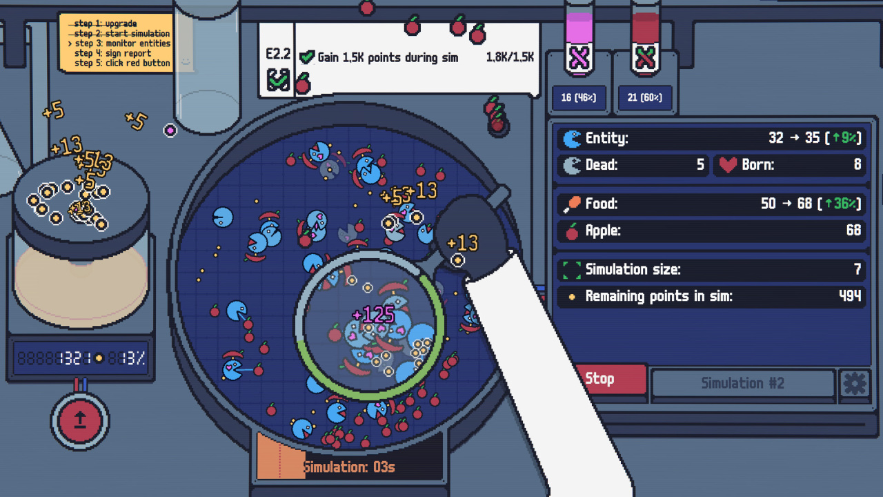 Simultree v Build 22830119 Новая версия Полная версия Последняя Дата выхода 15 апр. 2026 Разработчик PIPAPOU Жанр Симуляторы, Стратегии, Аркады Очень положительные на основе 68 обзоров в Steam 93% Обновлено 20 апреля 2026, 13:14 Список изменений Simultree, геймплей которого сосредоточен на мониторинге искусственных экосистем, предлагает примерить роль лаборанта, курирующего развитие виртуальных форм жизни. Деятельность в лаборатории строится вокруг запуска цикличных сценариев, где миниатюрные организмы стремятся выжить и размножиться под пристальным наблюдением. Жизненно важным аспектом становится своевременная поставка сочных плодов, ведь истощение ресурсов приводит к скоропостижной гибели подопечных. В процессе потребления пищи существа вырабатывают специфическую энергию, которую необходимо извлекать вручную при помощи мощного увеличительного стекла. Накопленный потенциал служит валютой для последующего расширения научных возможностей и продвижения по ветвям сложного древа навыков. В моменты затишья исследователь может заняться творчеством, создавая наброски в блокноте перед обязательным заверением отчетности. Системная модернизация открывает доступ к глубокой настройке биологических черт и автоматизации рутинных процессов. Геймеру доступно свыше 50 параметров для совершенствования, включая повышение выносливости созданий и усиление оптических приборов для сбора данных. Интеграция 10 различных генетических свойств позволяет адаптировать популяцию к меняющимся условиям, делая эксперименты в Simultree максимально вариативными. Основная кампания рассчитана примерно на 4 часа интенсивного управления, однако наличие бесконечного режима превращает процесс в долгосрочное состязание. Высокая эффективность действий вознаграждается позициями в сетевой таблице лидеров, мотивируя на поиск наиболее прибыльных стратегий. Конечный этап изысканий предполагает разблокировку всех доступных технологий и достижение пика эволюционного развития в рамках заданных параметров. Скачать торрент Скриншоты Показать больше Скачать Simultree Тип релиза Пиратка (Таблетка: Не требуется) Версия v Build 22830119 (Полная) Последняя Размер 50 МБ Интерфейс Английский Озвучка Английская Установка: Скачать .torrent торрент файл Скачать БЕЗ торрента прямая ссылка через uTorria Альтернативные раздачи Прямые ссылки Облачные хранилища v Build 22830119 60 МБ Показать Системные требования ОС: Windows 11 (64-bit) Процессор: 64-bit Оперативная память: 2 ГБ Видеокарта: integrated Graphics Место на диске: 1 ГБ Казуальная, Кликер, Idle-игра, Менеджмент, Симулятор колонии, Расслабляющая, Управление ресурсами, Экономика, Минимализм, Цветастая, Игры в 2D, Пиксельная графика, Point and click, Милая, Абстрактная