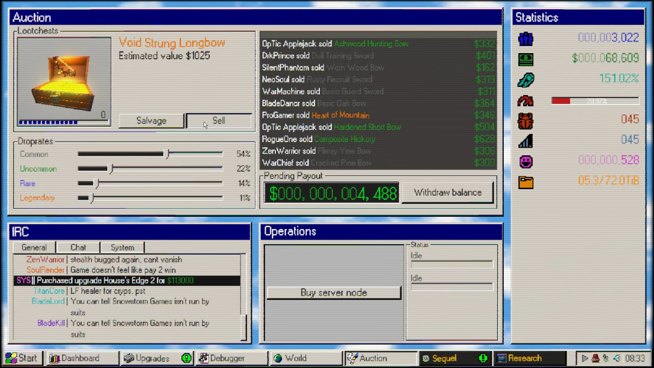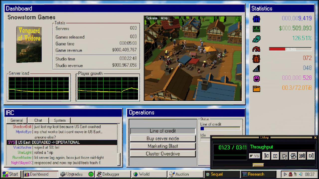 MMO98 RUS v Build 22894330 Новая версия Полная версия Последняя Дата выхода 20 апр. 2026 Разработчик BiteMe Games Жанр Стратегии, Симуляторы Смешанные на основе 267 обзоров в Steam 61% Обновлено 22 апреля 2026, 11:30 Список изменений MMO98, симулятор управления студией по выпуску многопользовательских проектов в эстетике операционных систем конца 20 века, позволяет проследить этапы развития от скромного стартапа до статуса лидера индустрии. Визуальное оформление, стилизованное под классический рабочий стол, скрывает за собой комплексную систему масштабирования цифрового бизнеса. Процесс превращения локального предприятия в транснациональную корпорацию завязан на грамотном: инвестировании накопленного капитала в серверные мощности для обслуживания растущей аудитории; оперативном устранении программных ошибок и технических сбоев ради лояльности сообщества; планомерном расширении присутствия в различных регионах планеты при возникновении повышенных нагрузок; выпуске коммерчески успешных продолжений и массовых хитов для укрепления репутации бренда. Успех предприятия напрямую зависит от умения балансировать между техническим совершенством и маркетинговым ростом. Постепенная модернизация инфраструктуры открывает доступ к более сложным задачам, превращая рутинное администрирование в увлекательную стратегию расширения влияния. Ритм MMO98 удерживает внимание за счет непрерывного прогресса и формирования преданной базы фанатов, готовых поддерживать новые начинания компании. Постепенное овладение глобальным рынком требует не только вычислительных ресурсов, но и стратегического видения, позволяющего обходить конкурентов в гонке за звание лучшей платформы в цифровом пространстве. Высокая плотность событий заставляет постоянно контролировать показатели эффективности, не давая виртуальной империи прийти в упадок. Скачать торрент Скриншоты Показать больше Скачать MMO98 Тип релиза Пиратка (Таблетка: Не требуется) Версия v Build 22894330 (Полная) Последняя Размер 127 МБ Интерфейс Русский Озвучка Отсутствует Установка: Скачать .torrent торрент файл Скачать БЕЗ торрента прямая ссылка через uTorria Альтернативные раздачи Прямые ссылки Облачные хранилища v Build 22882377 150 МБ Показать Системные требования ОС: Windows 10 (64-bit) Процессор: Intel i3-540 Оперативная память: 8 ГБ Видеокарта: integrated Graphics Место на диске: 150 МБ Кликер, Idle-игра, Капитализм, Казуальная, Игры в 2D, Point and click, Ретро, Экономика, Менеджмент, Управление ресурсами, Альтернативная история, Расслабляющая