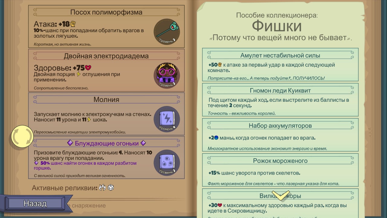 - Выбор из нескольких персонажей, множество предметов экипировки и фишек.
