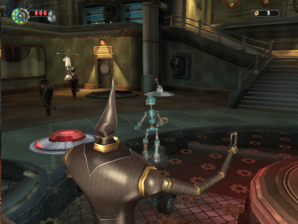 Robots – классический трехмерный платформер до мозга кости, в котором вам предстоит бродить по многоуровневым игровым зонам, собирать бонусы и призы, открывать секретны и при помощи гаечного ключа героически изничтожать механических прихвостней главного злодея. И так по кругу, пока вы не доберетесь до лиходея и не одолеете его в неравной битве. В процессе прохождения меняются лишь локации и враги, и протагонист становится чуточку сильнее благодаря некоторым улучшениям.