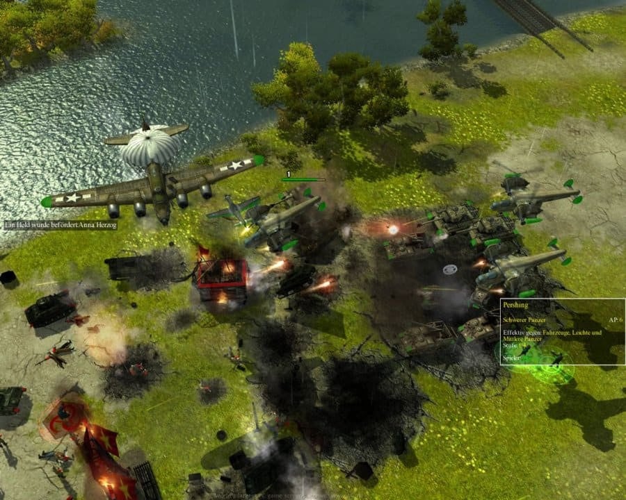 War Front Turning point RUS Полная версия Последняя Дата выхода 2007 Разработчик Digital Reality Жанр Стратегии Обновлено 26 января 2025, 00:57 Список изменений Действие War Front Turning point происходит в мире альтернативной истории. В начале Второй мировой войны Гитлера убили. Новый фюрер успешно провёл операцию по захвату Британских островов. После этой войны Третий Рейх и США начали холодную войну технологического характера. В итоге произошло развитие многих технологических новинок. В конечном результате Великобритания и США сумели изгнать нацистов с территории Великобритании. При этом они берут в плен их фюрера. Его имя не называется. Власть нацистов в Германии рушится. Однако происходит непредвиденное событие. Армия СССР решила захватить страны Западной Европы. Начинается новый военный конфликт. Поскольку все стороны конфликта имели время, они сумели создать самые невероятные образцы оружия.В Военный фронт: Поворотный момент имеются следующие фракции: союзники. К ним относятся Великобритания и США. У них преимущество в технологическом плане и в воздухе. Это стало возможным благодаря использованию истребителей, бомбардировщиков, вертолётов-бронетранспортёров. Самым главным оружием является ядерная бомба, которая сбрасывается с самолёта; третий рейх. Нацисты сделали ставку на увеличение огневой мощи бронетанковых войск. Для этого они применяют танки типа Тигр и Пантера. Кроме этого присутствует дирижабль, выполняющий функции бомбардировщика. Очень эффективными являются солдаты в экзоскелетах. Основное оружие нацистов – крылатые ракеты Фау-1 и их доработка Фау-2; СССР. Его имеет преимущество в количестве солдат. Военнослужащие используют коктейли Молотова, а также охотно распродают водку. Главным оружием советов является ледяная бомба, замораживающая всё что можно в определённом радиусе. Примечательно, что все события в игре происходят в 1941 году. Пользователь может выбирать из большого разнообразия необычного оружия. При этом таких образцов в реальности не существовало в то время. Геймер может брать под своё управление 9 основных персонажей, по 3 от каждой фракции. У каждого из них имеются индивидуальные способности. Скачать торрент Скриншоты Видео из игры Скачать War Front Turning point Тип релиза RePack от DyNaMiTe Версия (Полная) Последняя Размер 2.72 ГБ Интерфейс Русский Озвучка Английская Особенности репака: Скачать .torrent торрент файл Скачать БЕЗ торрента прямая ссылка через uTorria Альтернативные раздачи Торренты Пиратка (Таблетка: Присутствует) v 1.0 1.04 ГБ Скачать Лицензия (Таблетка: Присутствует) v 1.0 3.09 ГБ Скачать Системные требования ОС: 7, 8, 10 Процессор: Intel Pentium 4 2,4 GHz, AMD Athlon 64 2400+ Оперативная память: 512 МБ Видеокарта: Nvidia Geforce 6600 или Radeon Х1300 Стратегии в реальном времени