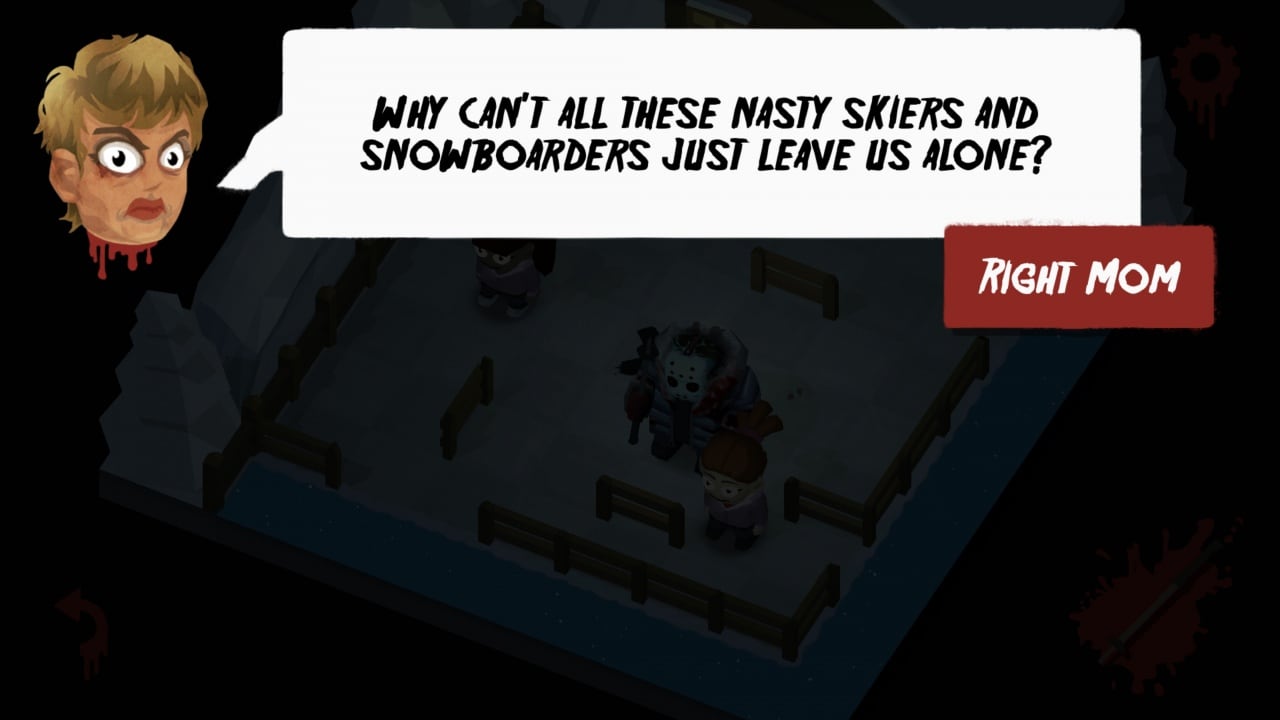Интересной деталью стала голова мамы головореза, что подбодряет сыночка, говоря о том, какой он у нее особенный. Мама дает дельные советы по ходу действия, и у нее можно попросить подсказку, когда зашел в тупик.